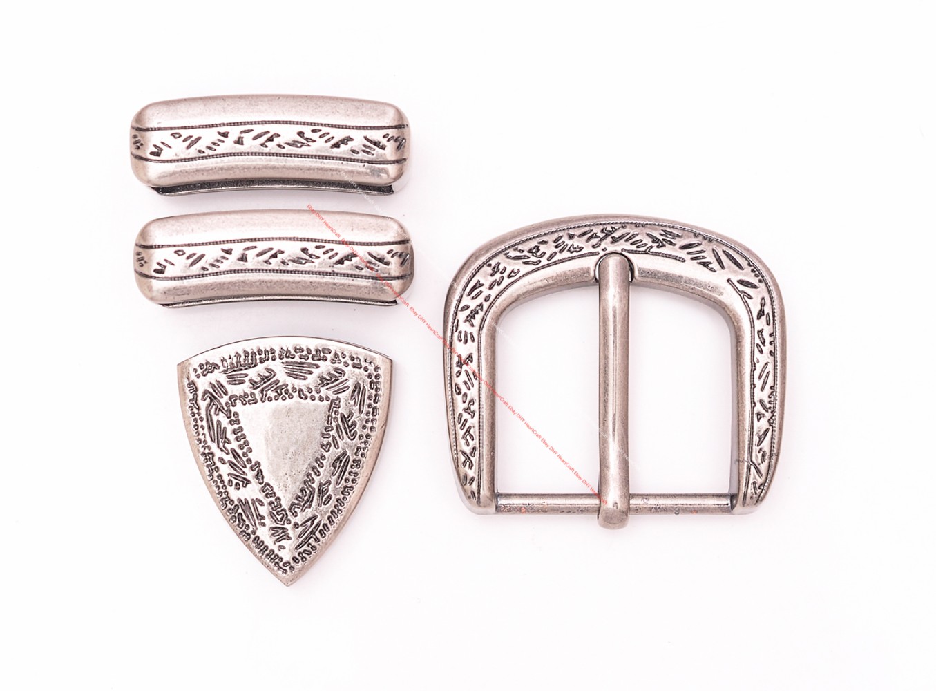 30mm Antique Silver Engraved Floral Western Leathercraft 4 Pcs Set Belt Buckle