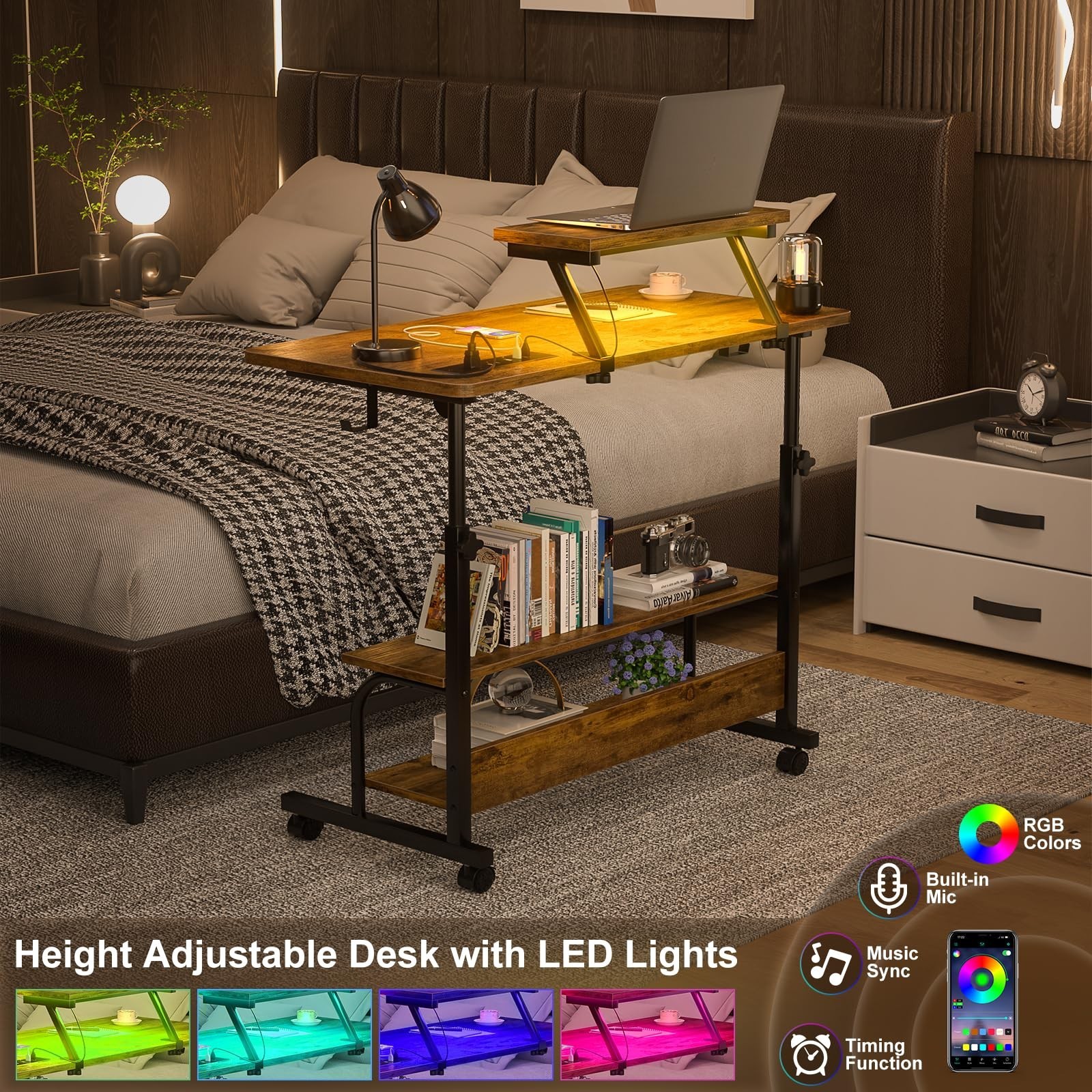 Height Adjustable Standing Desk with Power Outlets and LED Lights - 32 Manua...