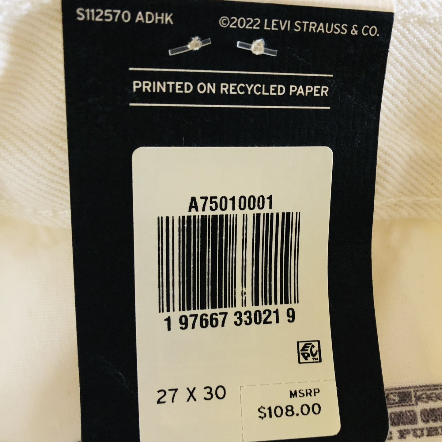 Levi's 501 Original High Rise Straight Leg Size 27 x 30 W28.5 Button Fly New
