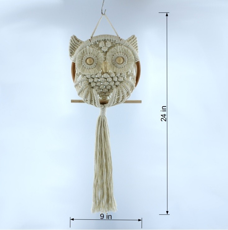 • Handmade Macram Owl with Wooden Ring Tassel