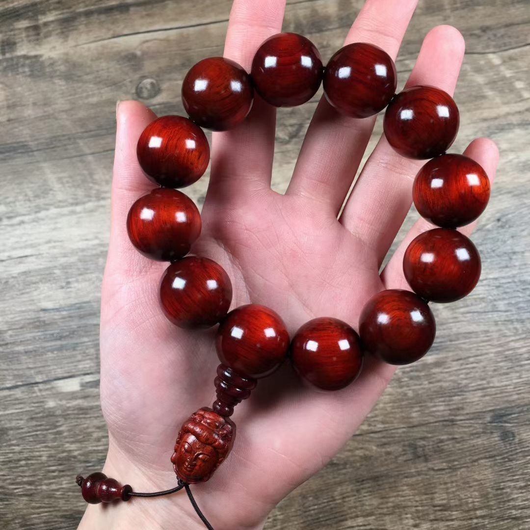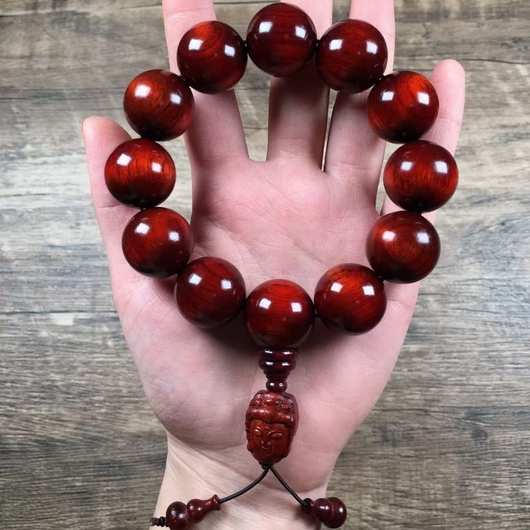 20mm Grade A Wood Carved Buddha Pendant Beads Lucky Bracelet Buddhist Jewelry