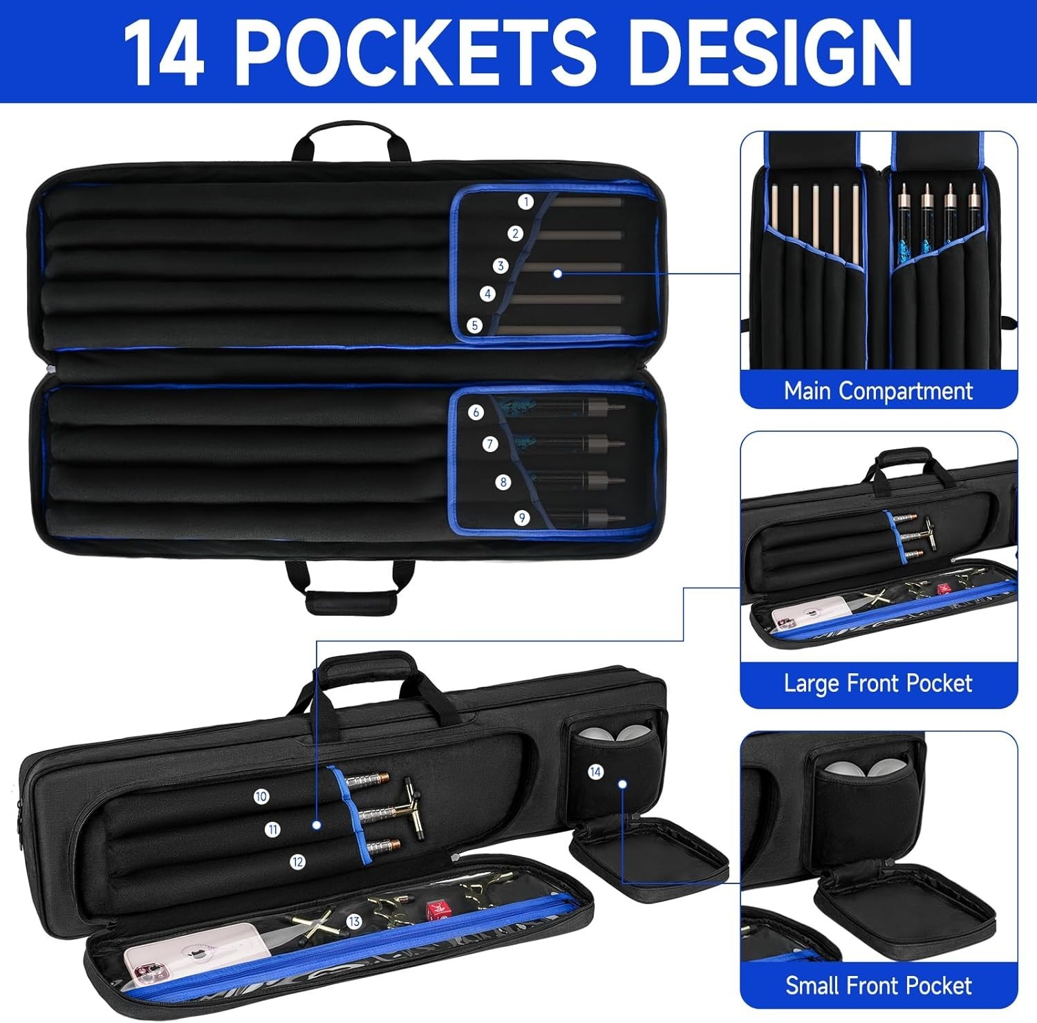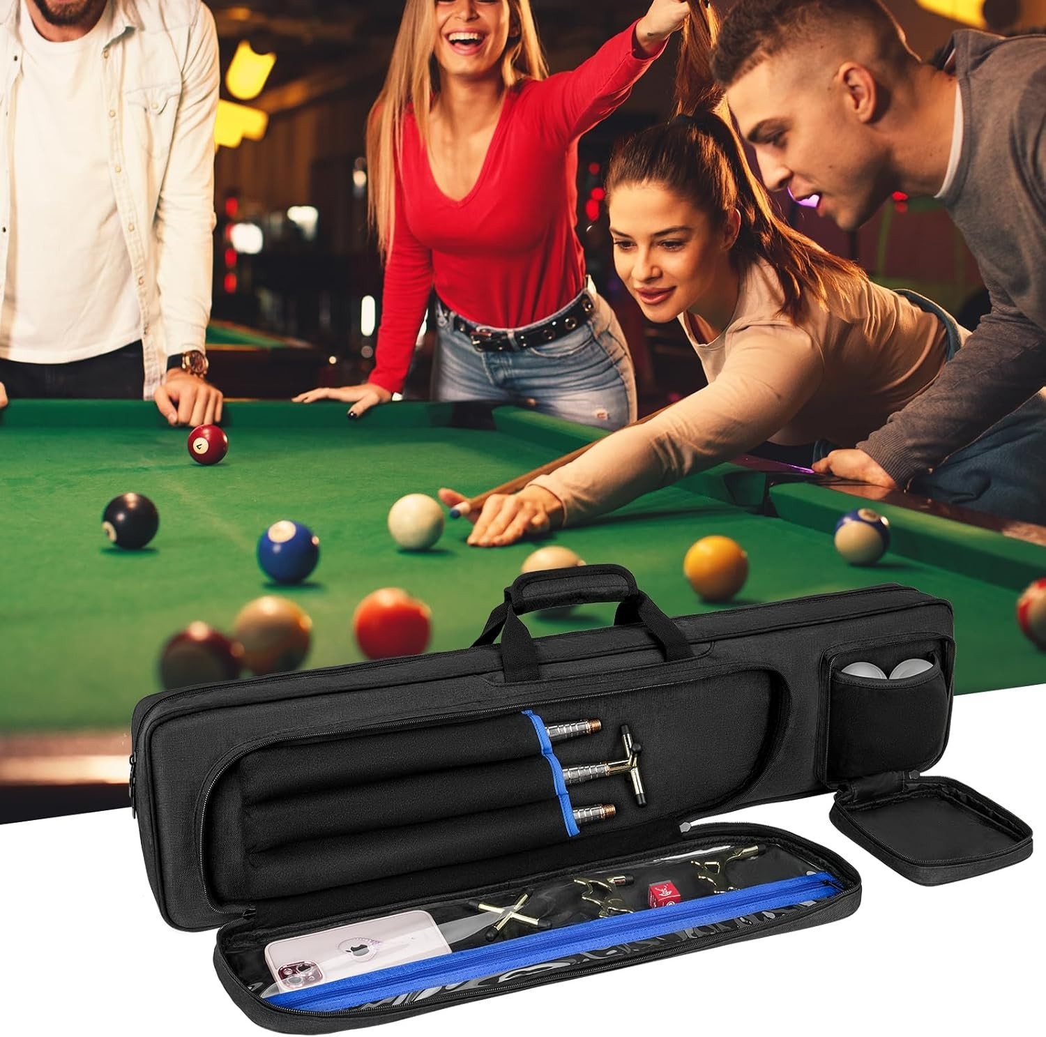 как выглядит Pool Cue Case 4x5, Pool Stick Carrying Case Holds 4 Butts and 5 Shafts, фото