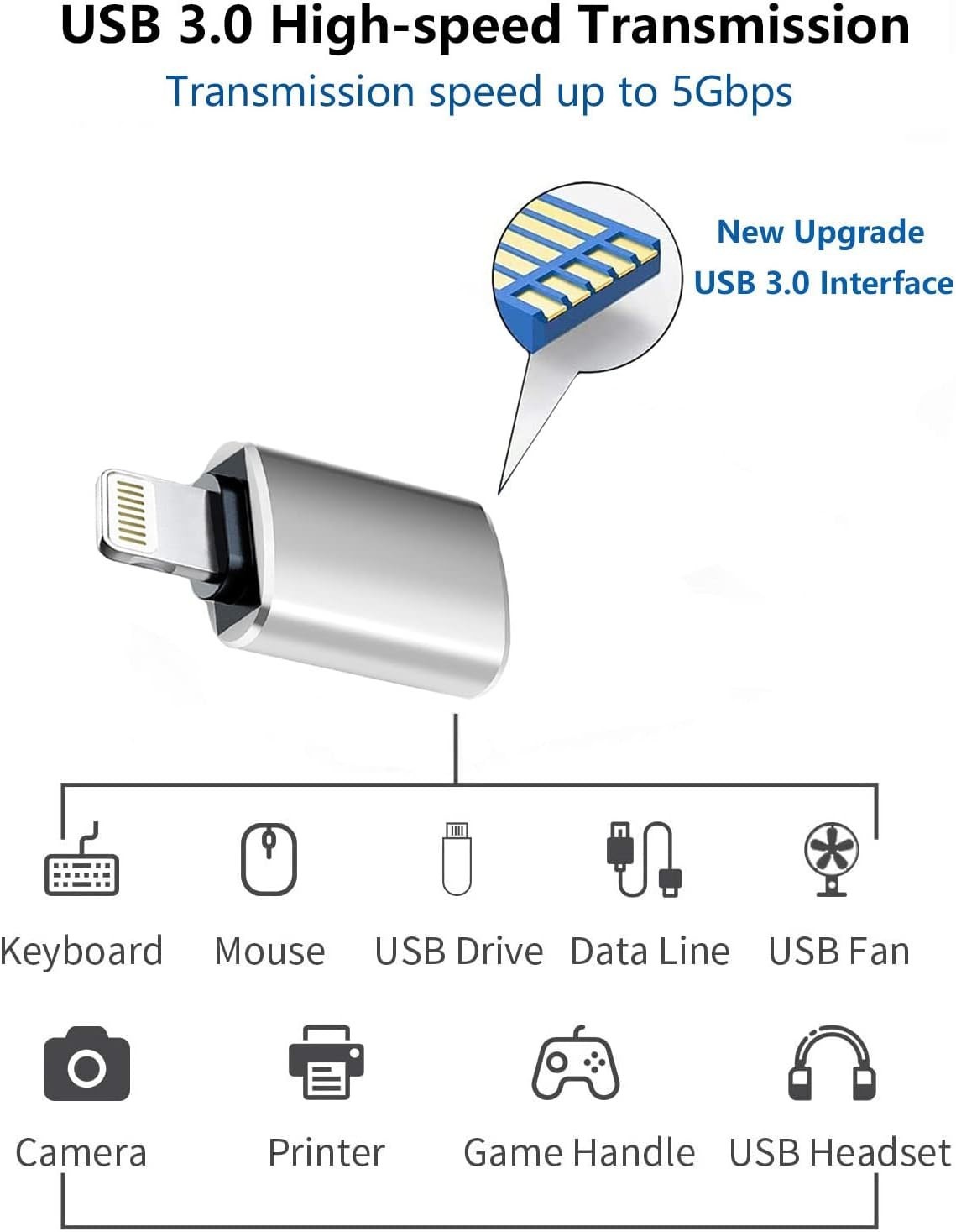 Apple Lightning to USB Camera Adapter, USB 3.0 OTG Cable for iPhone/iPad to