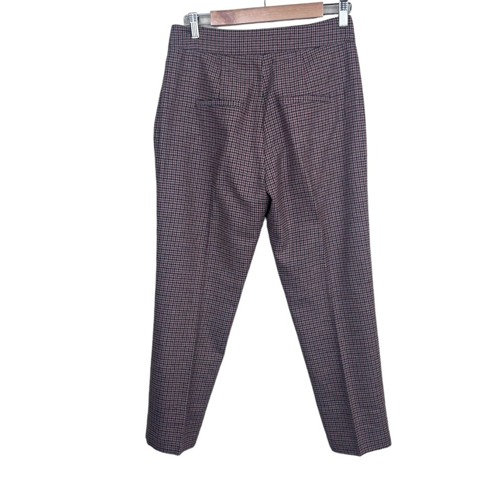 Veronica Beard Women s Gemini Check Crop Pants Red Multi 6 Wool Blend Trousers