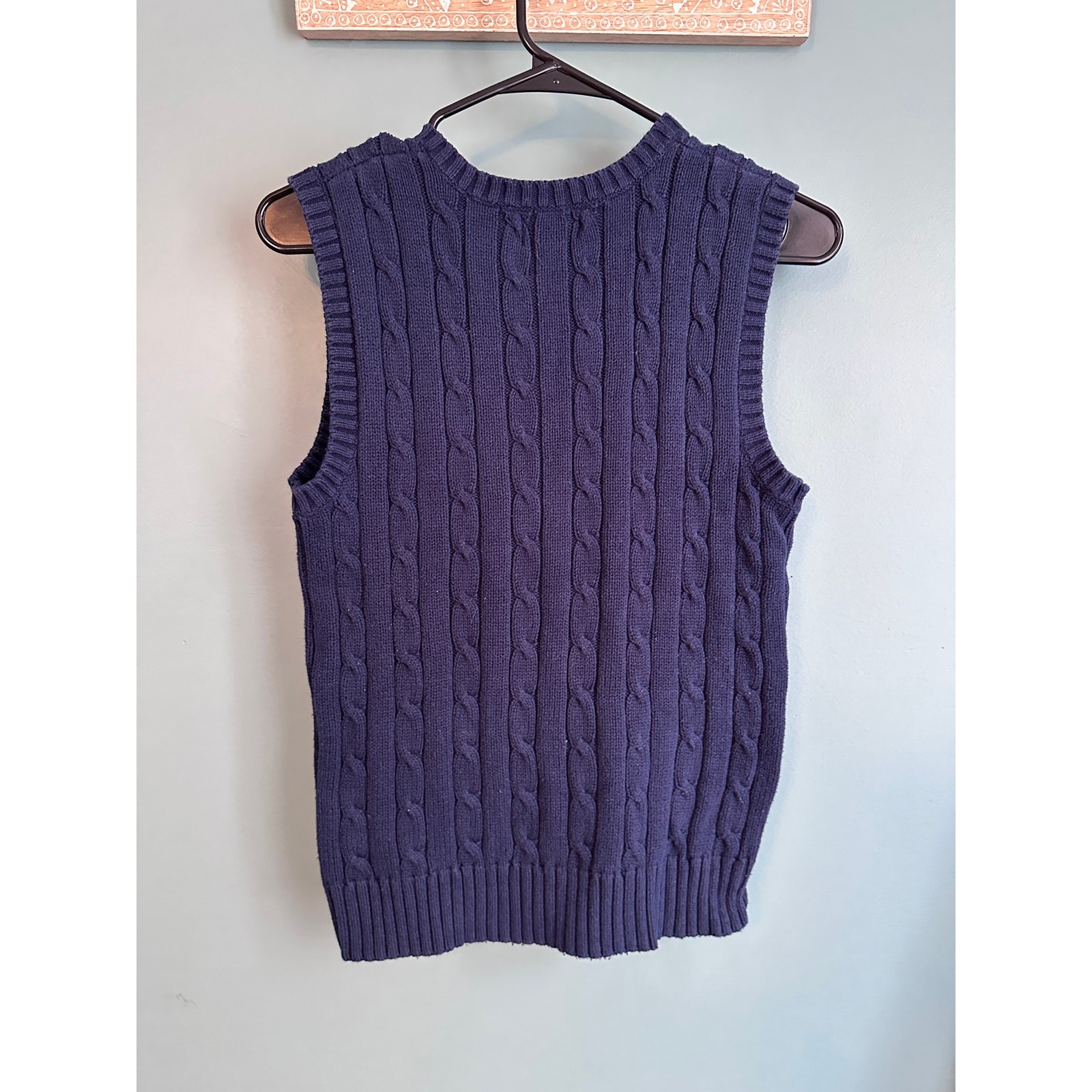 как выглядит Chaps Kids Blue Cable Knit Pullover V-Neck Sweater Vest фото
