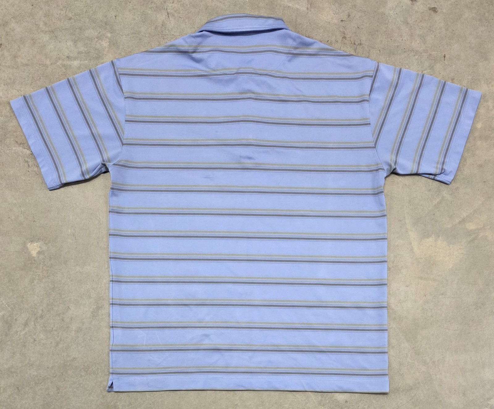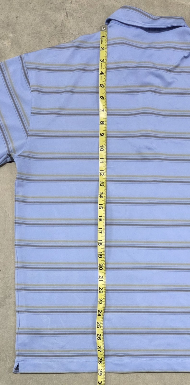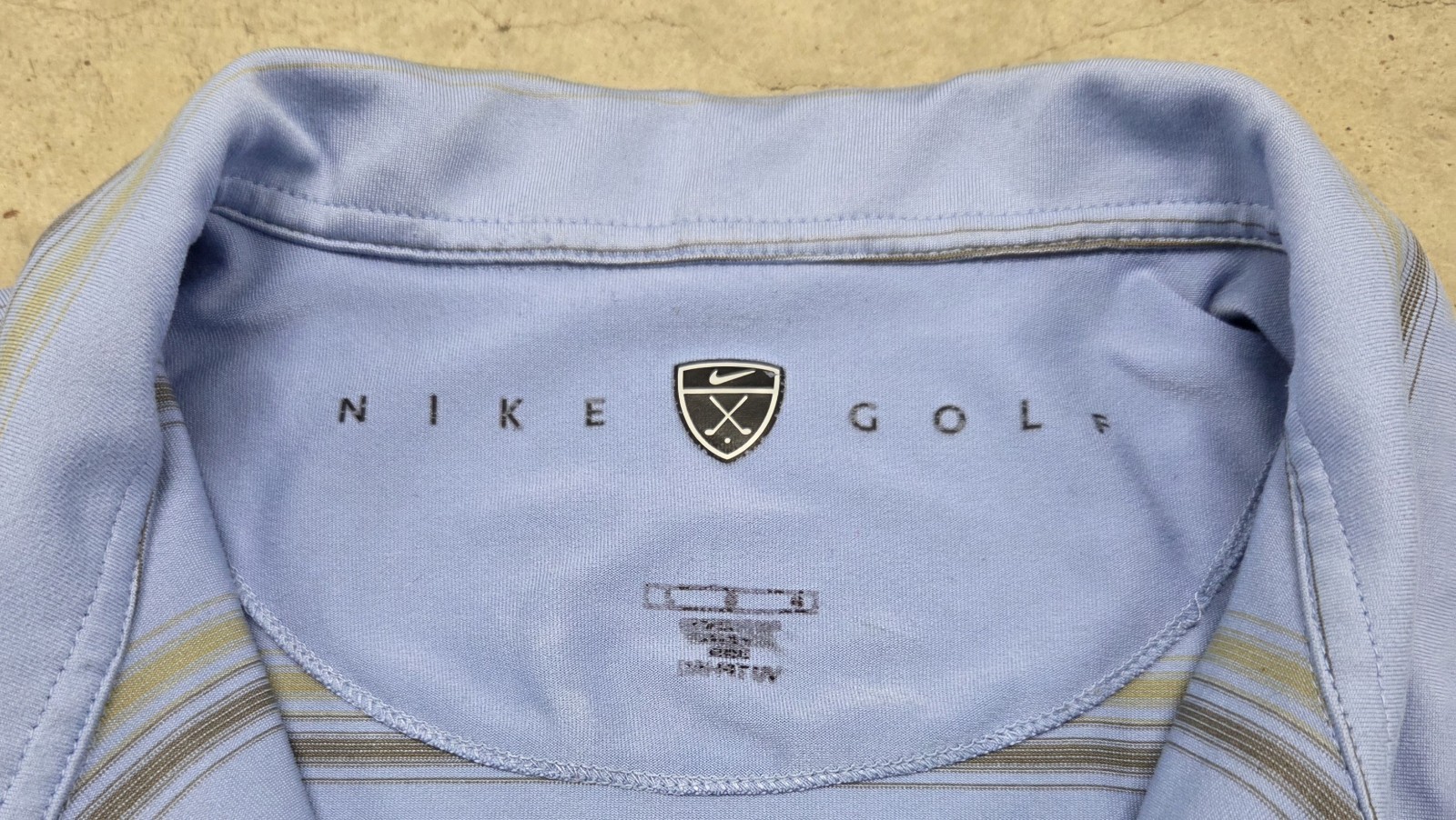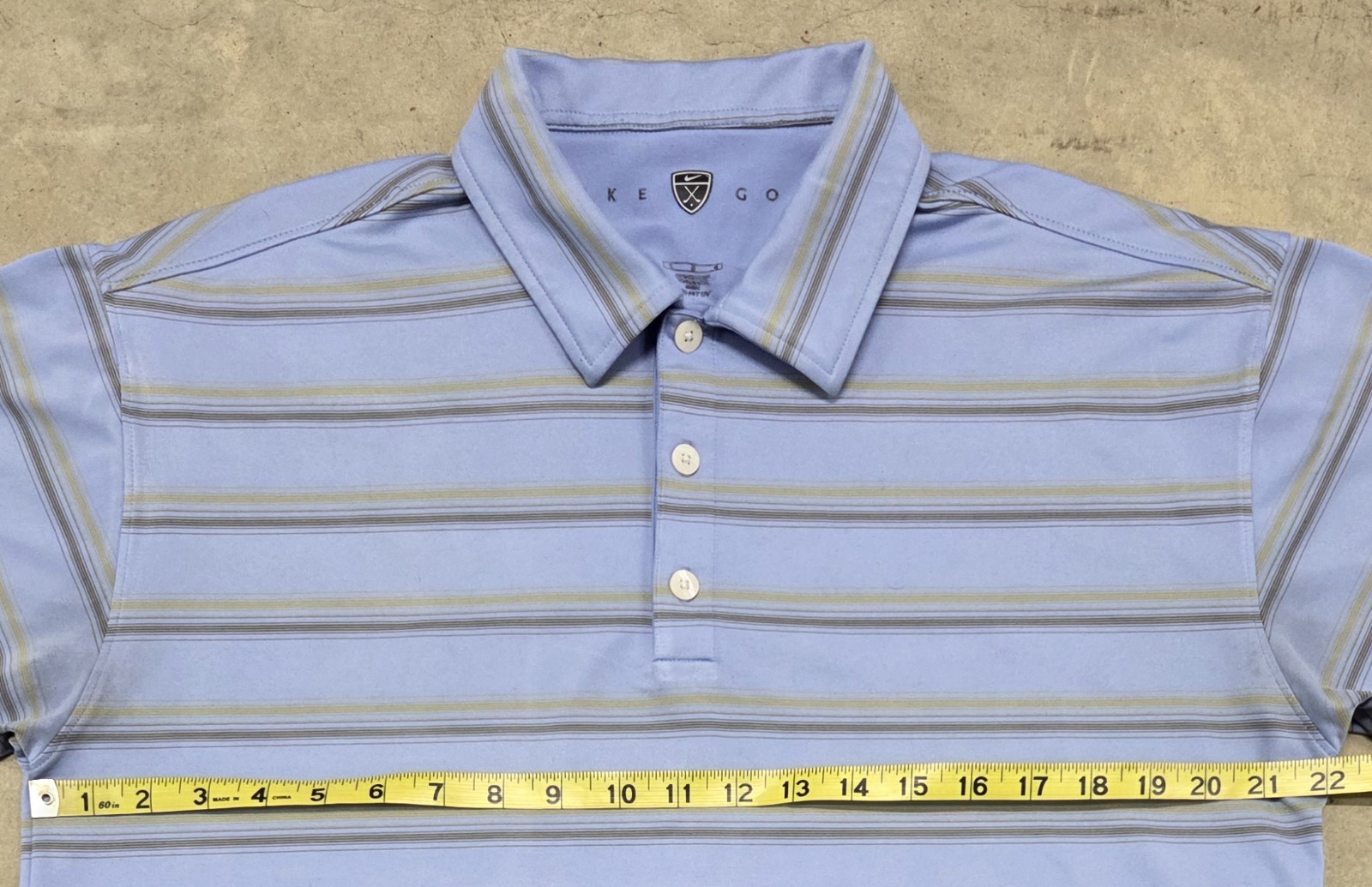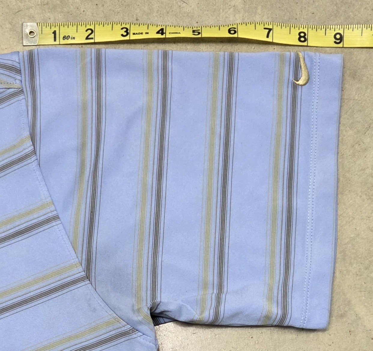 NIKE GOLF Dri-Fit Polo Men Large Blue Striped Short Sleeve Swoosh Athletic Shirt