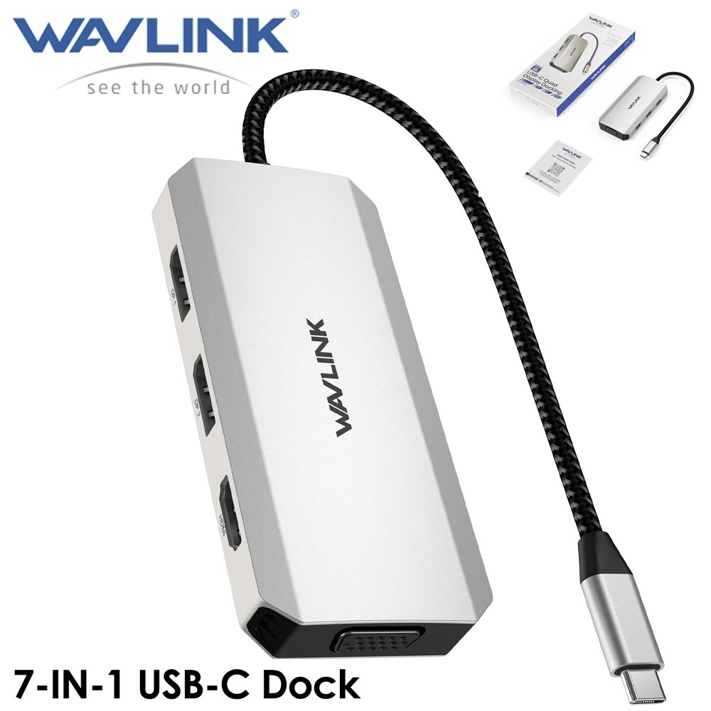 Особенности: WAVLINK, USB C Laptop Docking Station, Quad Monitor, 7-IN-1 Multiport Adapter, with 4K HDMI, 8K DP1/2, VGA, 3xUSB2.0