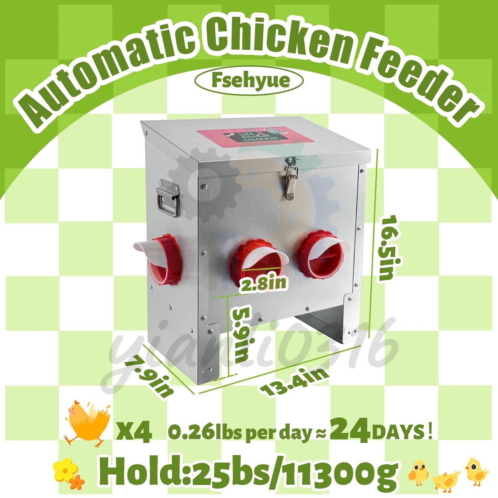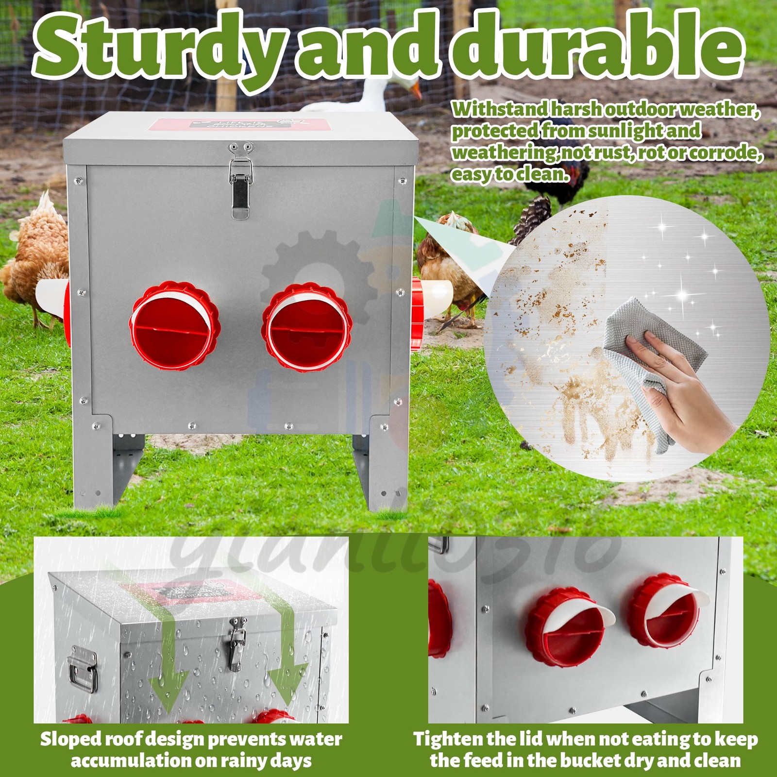1 Extra-Large Galvanized Metal 25 lb Chicken Feeder with 4 No-Waste Ports