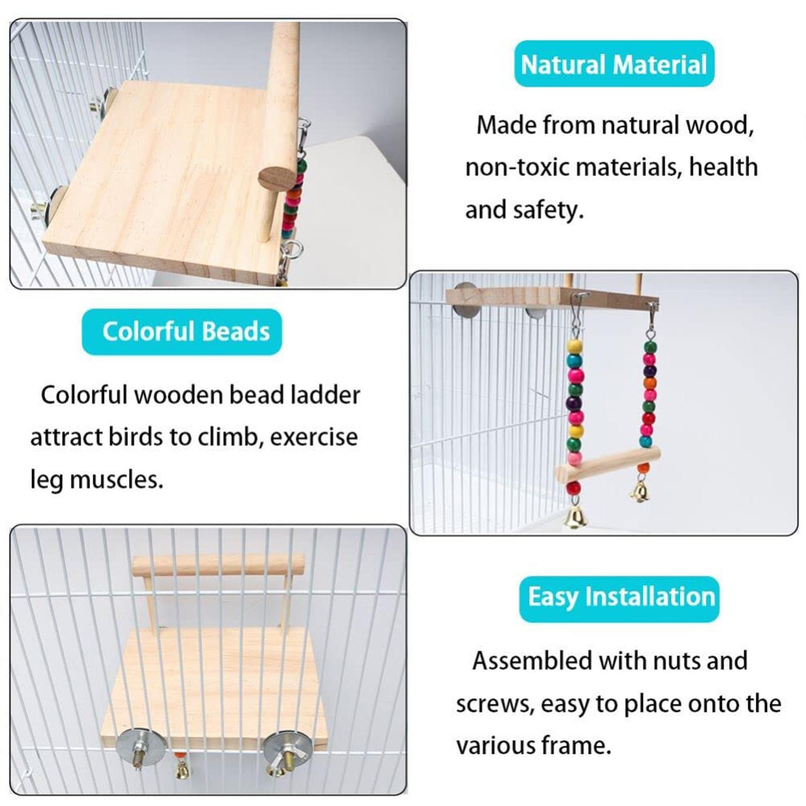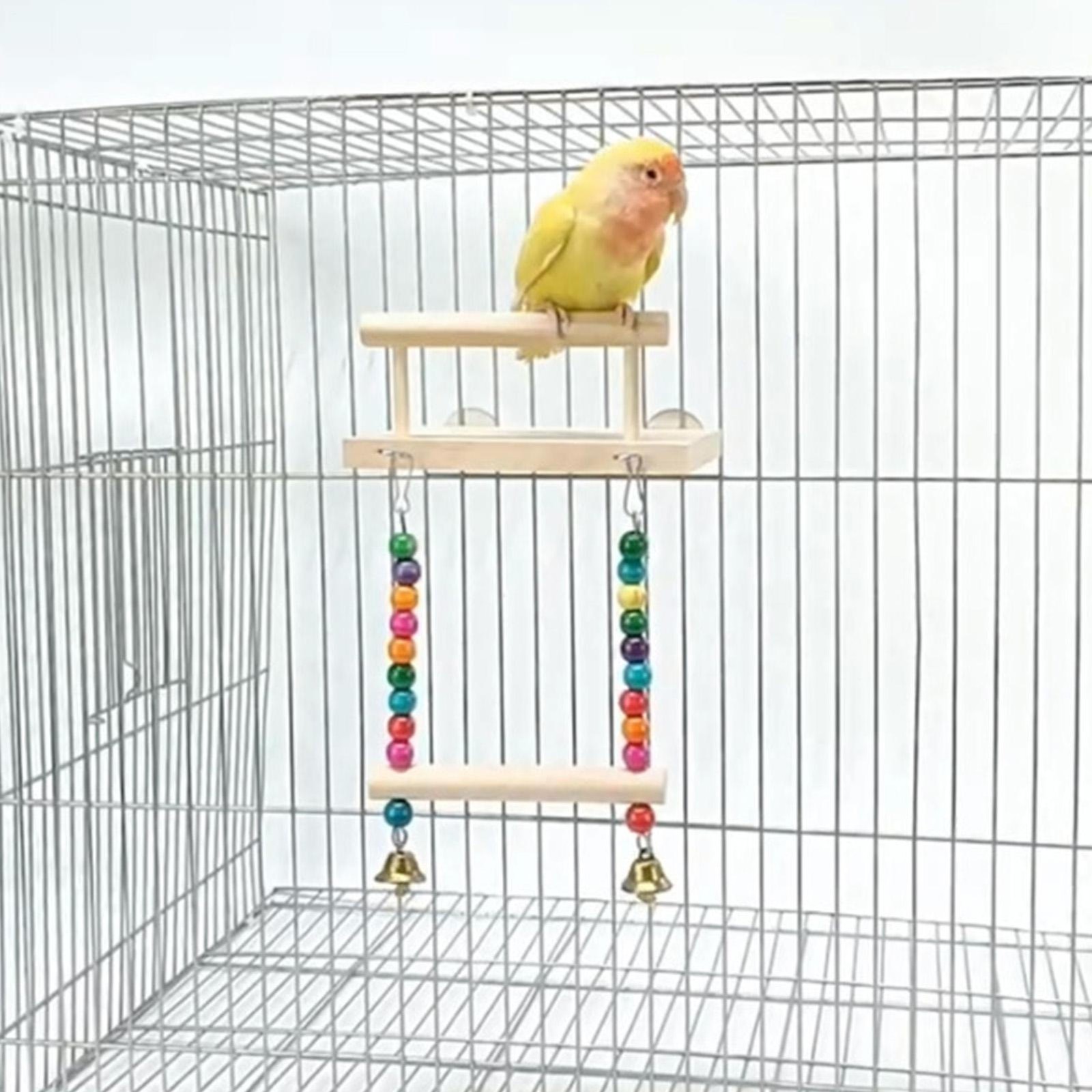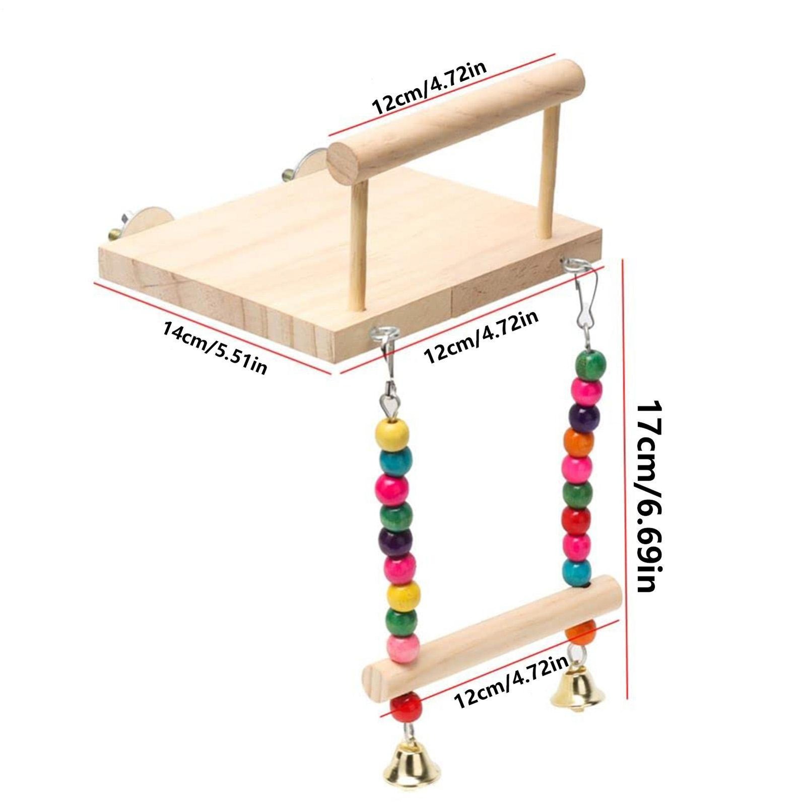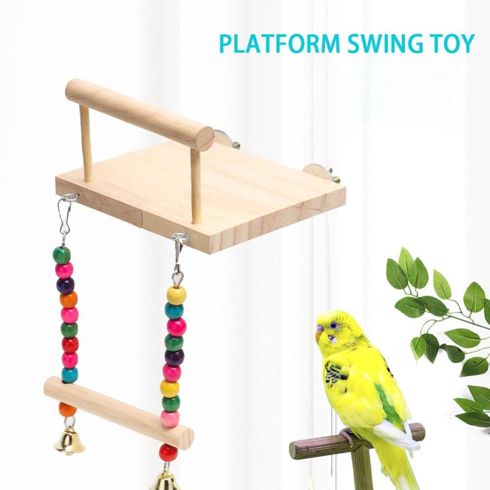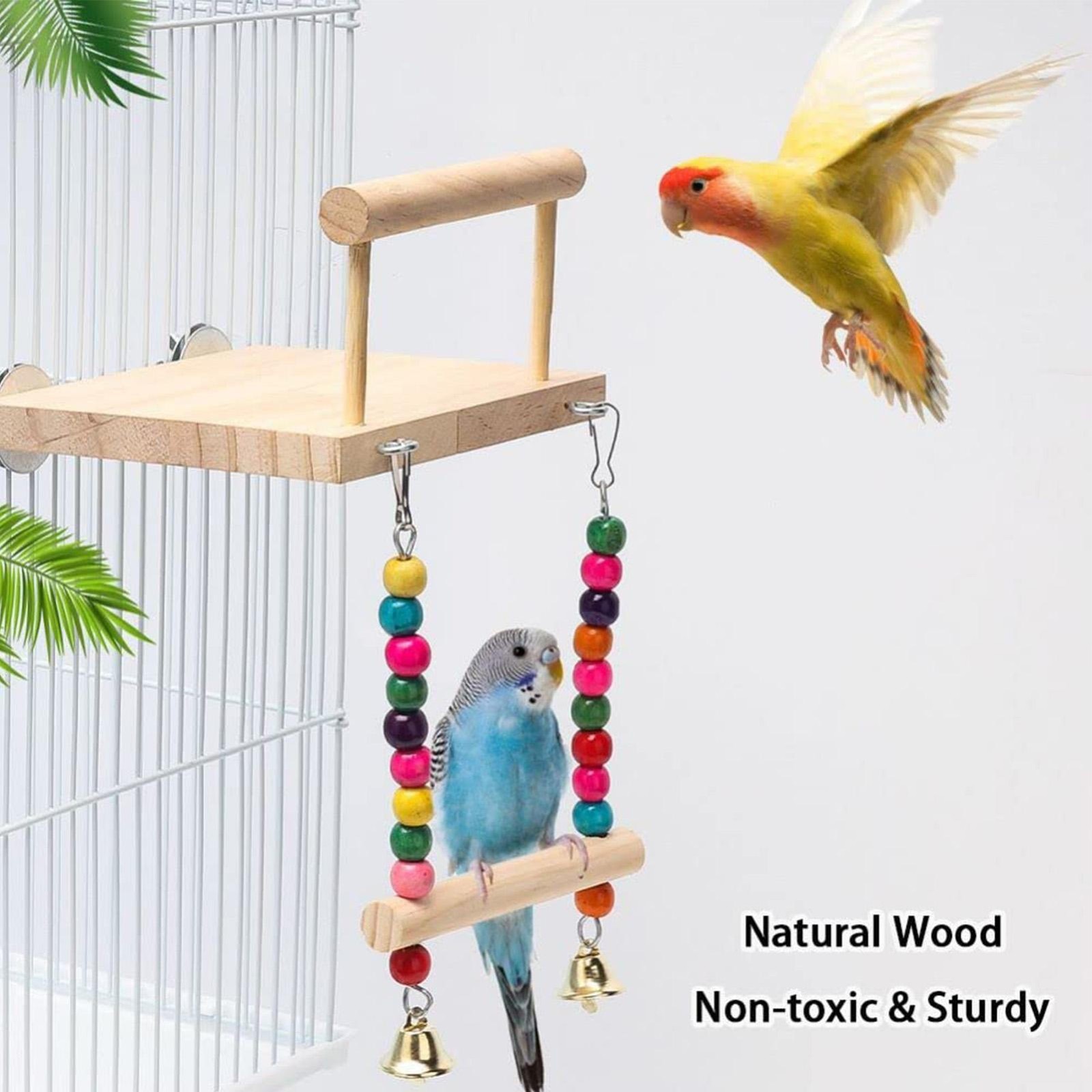 Bird Platform Wooden Parakeet Toys With Swing for Cage Bird Perches With Rattle