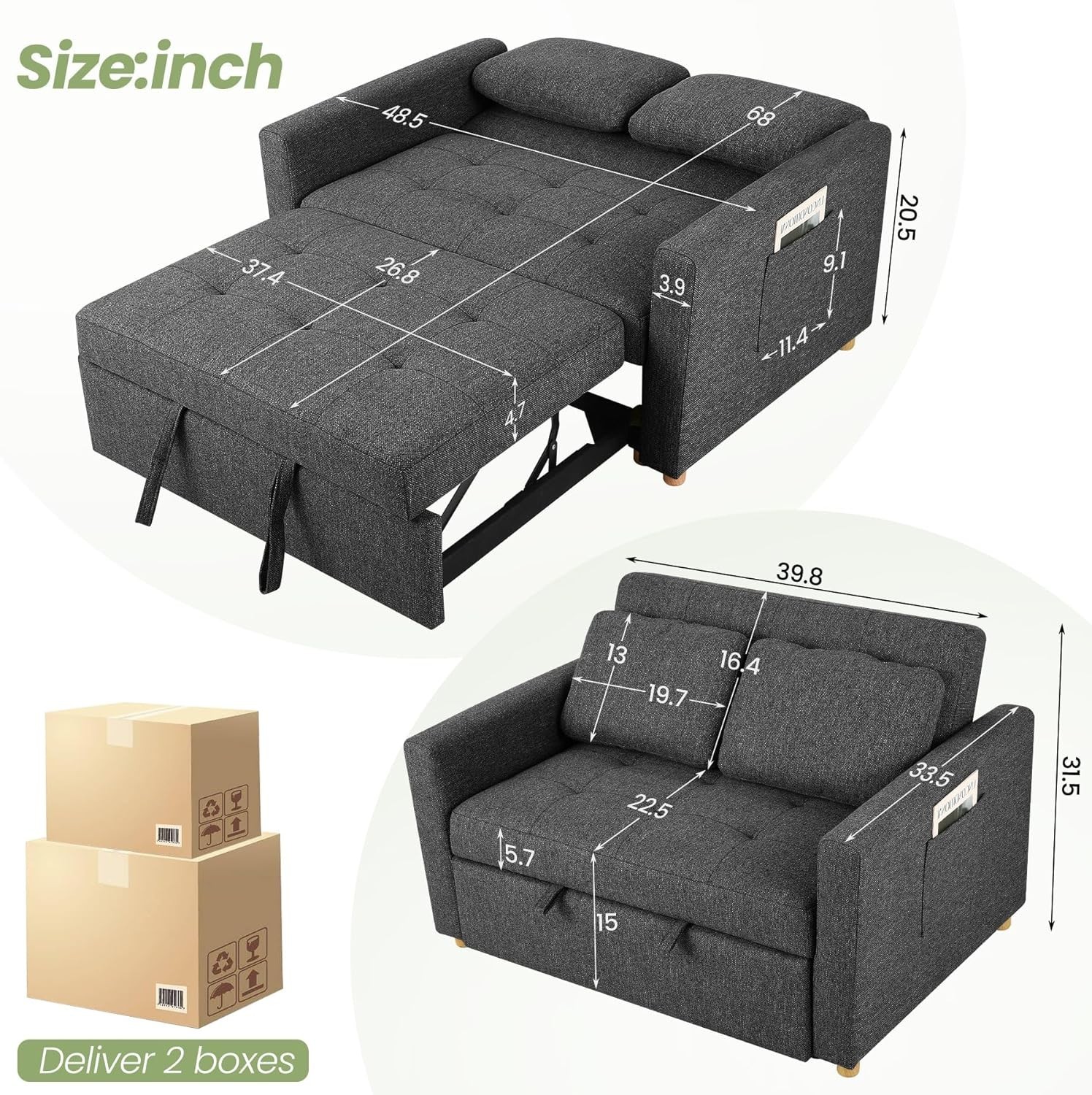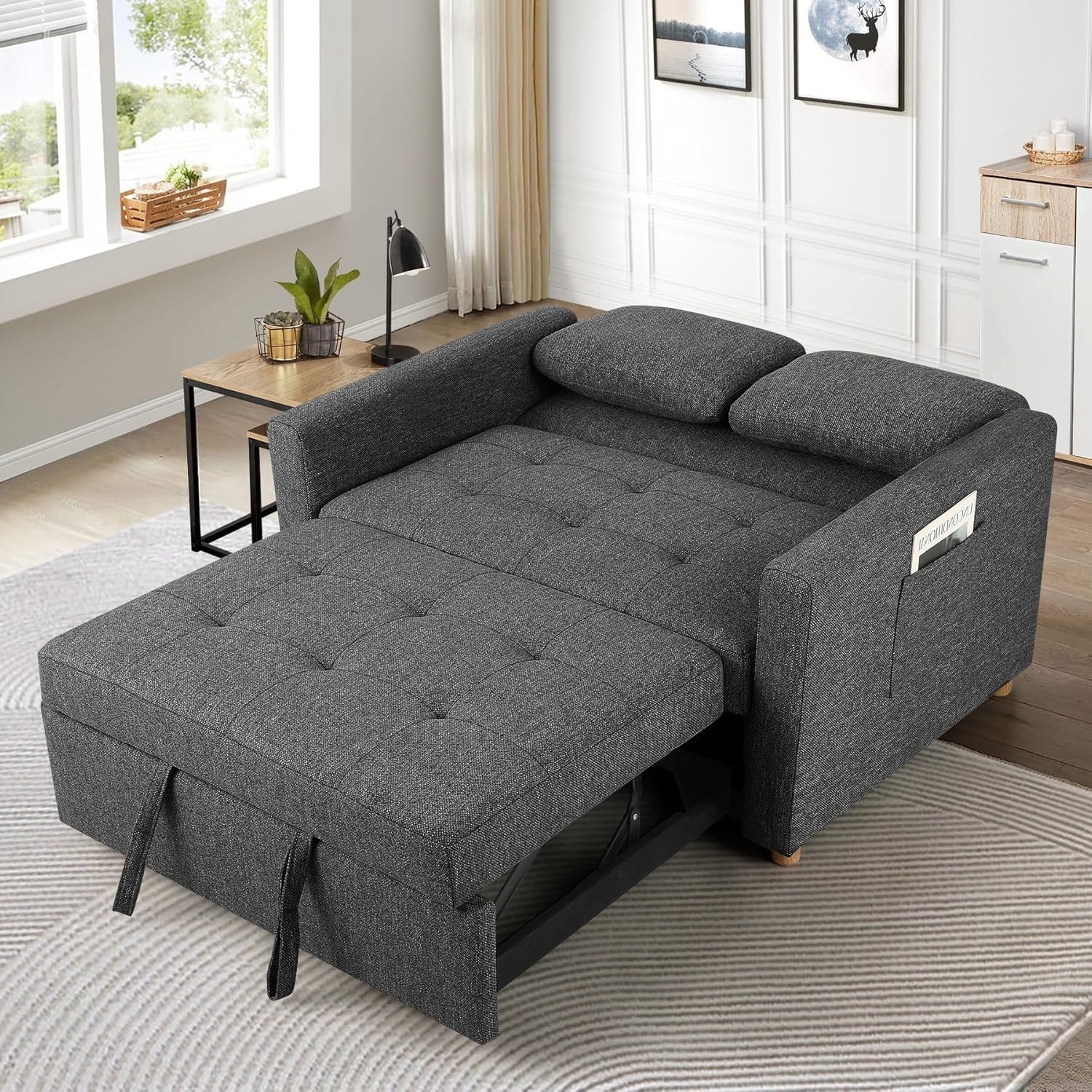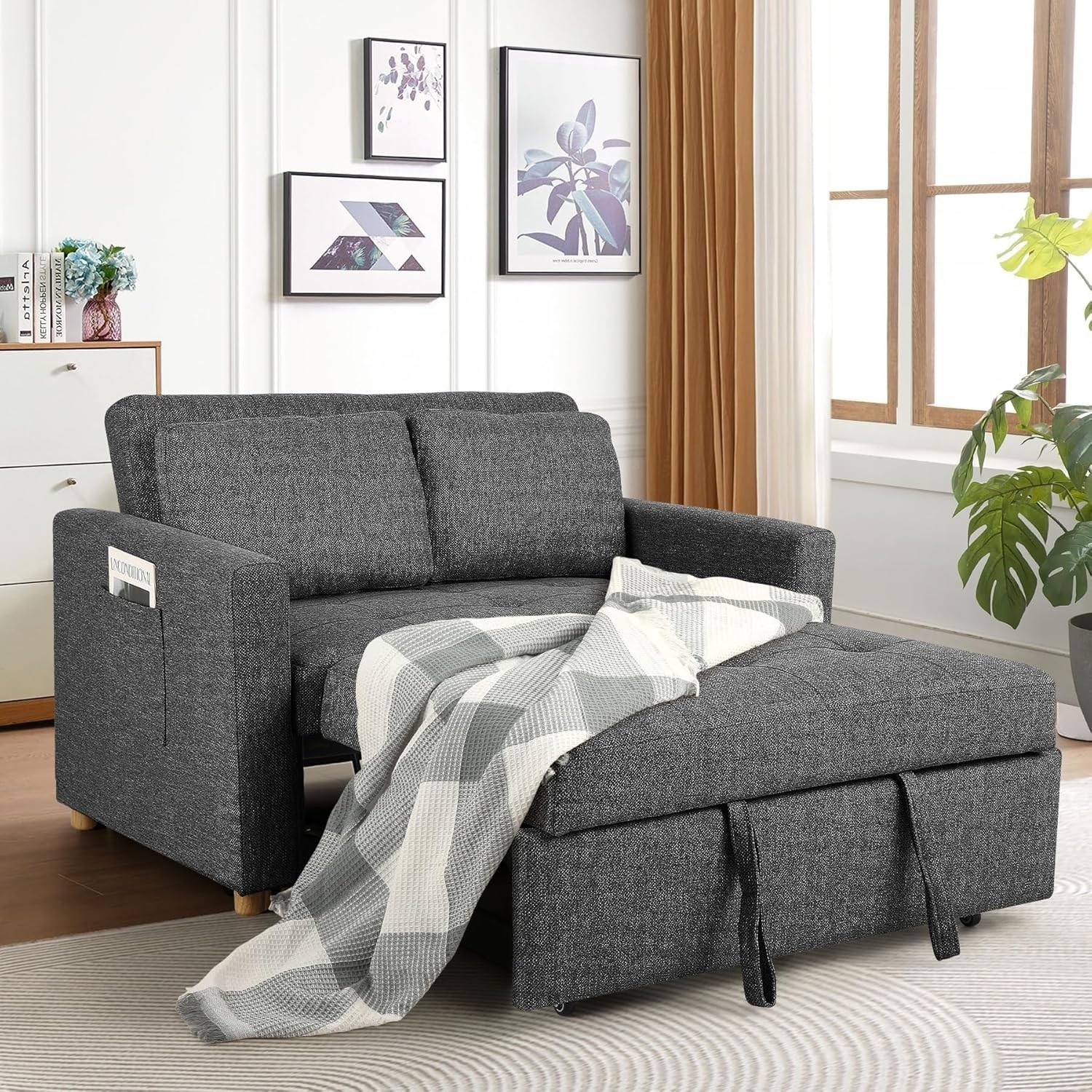 3-in-1 Convertible Sofa Bed Sleeper Couch Pull Out Bed 2-Seater Loveseat Futon