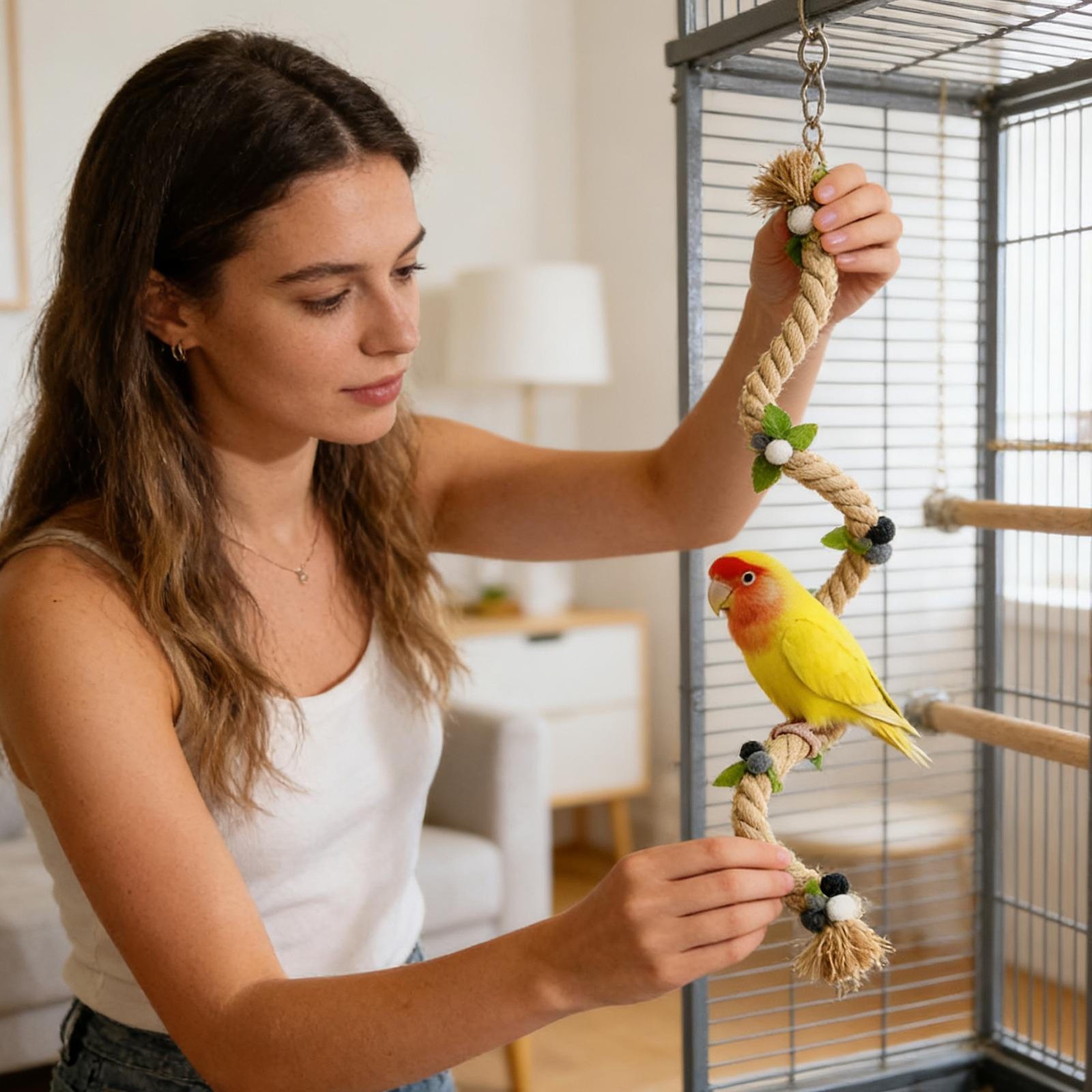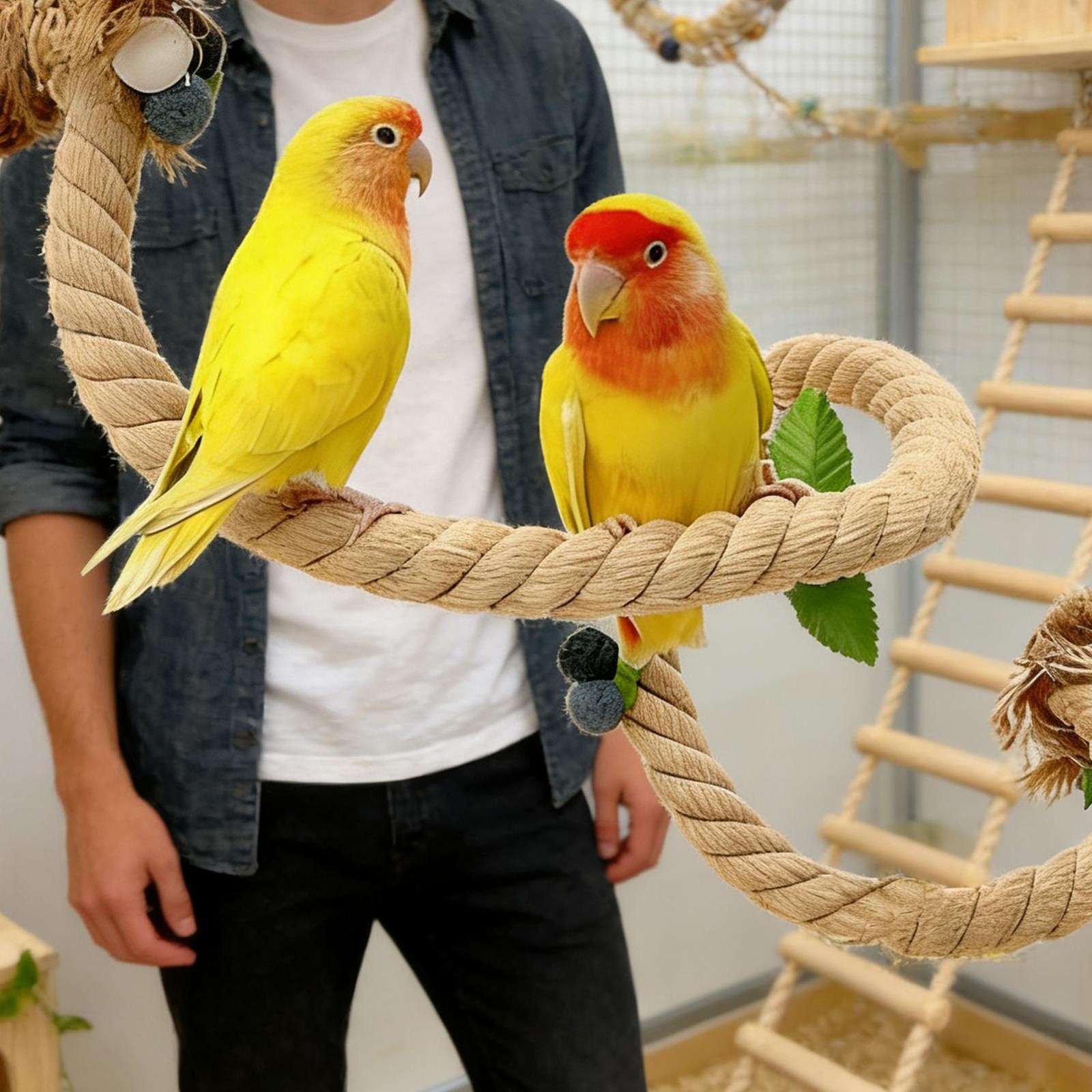 Bird Rope Perch Stand Bird Cage Rope Toy for Cockatiels Lovebird Parakeet Parrot