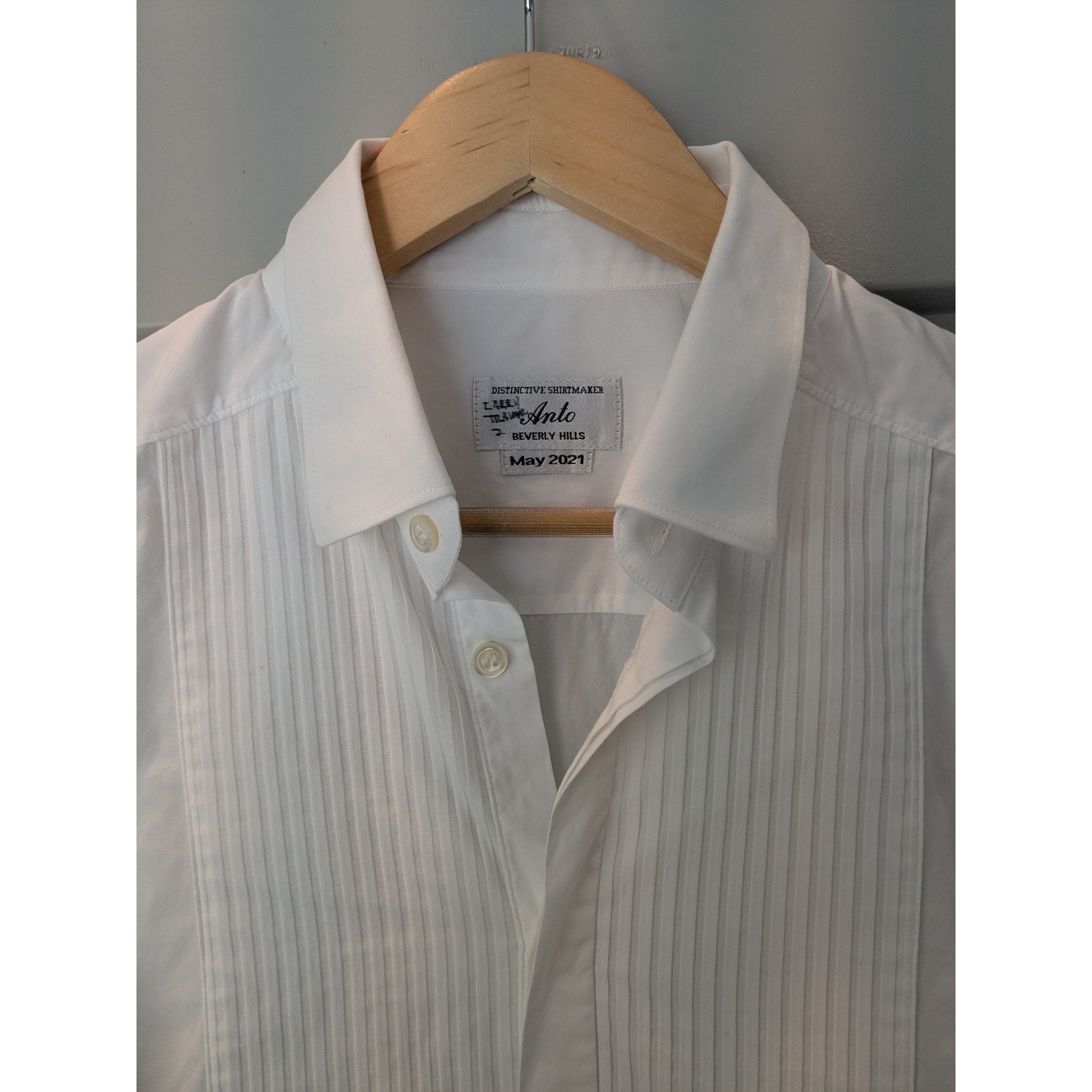 Anto Beverly Hills White Tuxedo Shirt Mens L/S Formal Dress Button Size 16.5