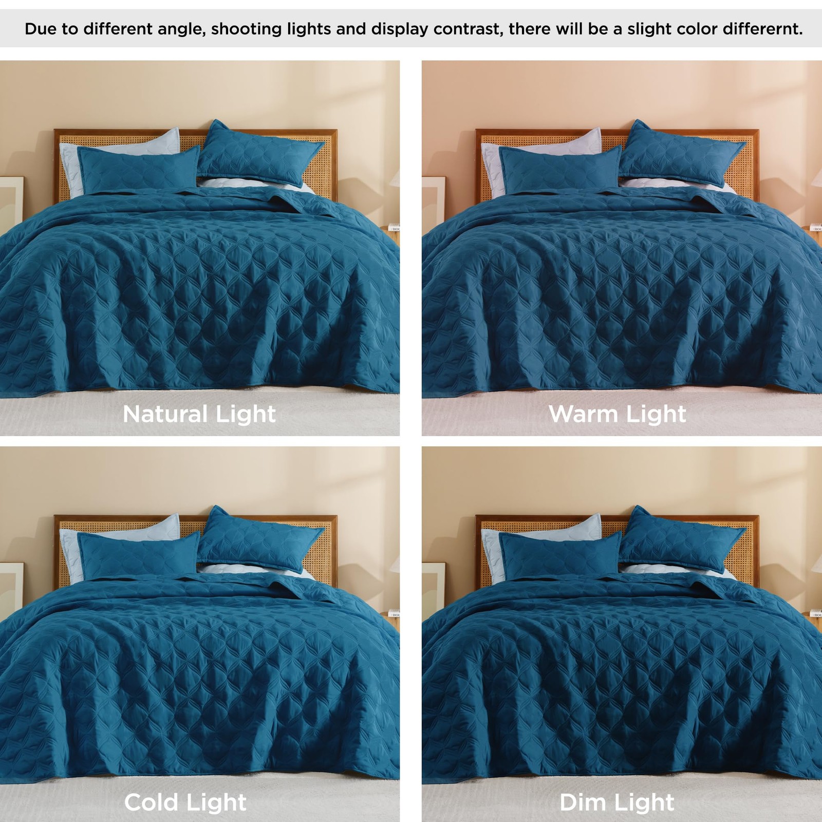 King Size Quilt Bedding Set - Teal Lightweight Comforter Bedspreads Coverle...