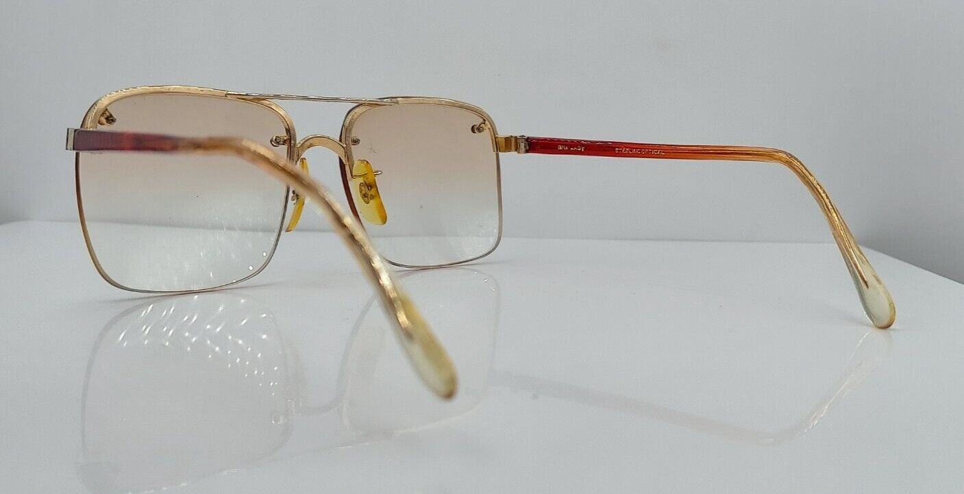как выглядит Vintage Sterling Optical Gold Pilot Half-Rim Metal Sunglasses Japan FRAMES ONLY фото