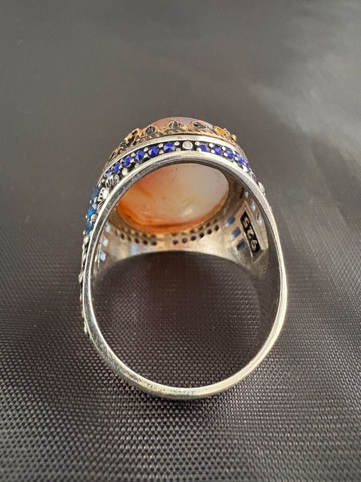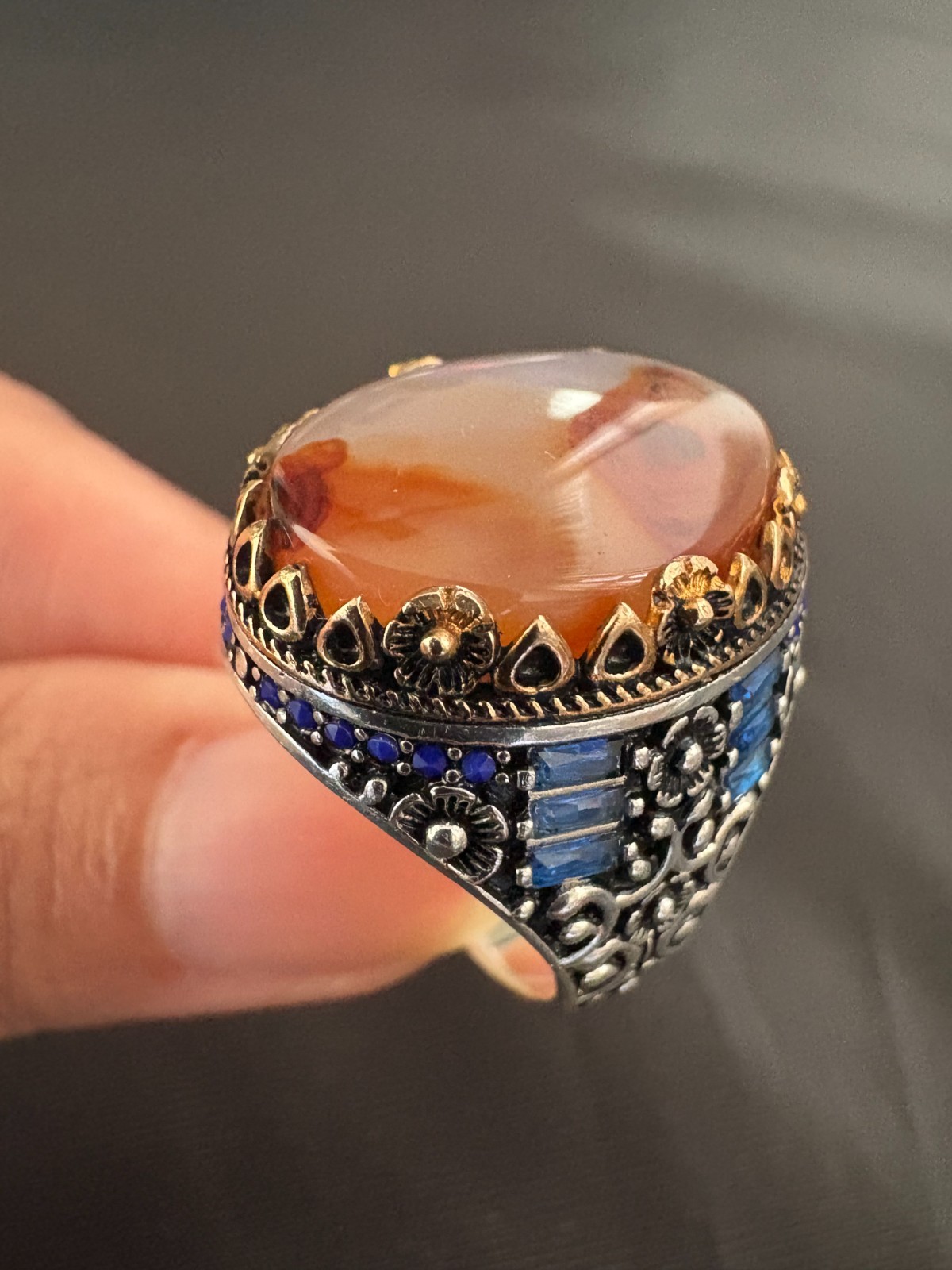 925 Sterling Silver Ring Yemeni Aqeeq Agate Stone Ring Men Ring New Size 9 US
