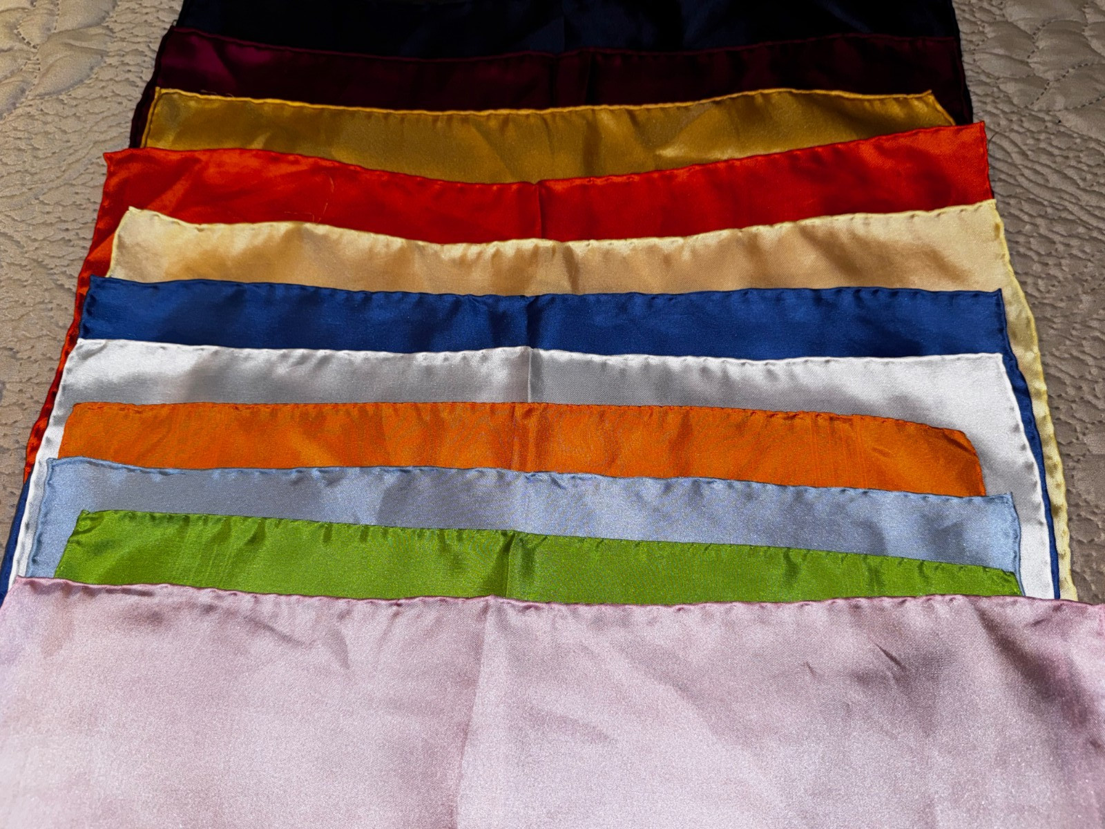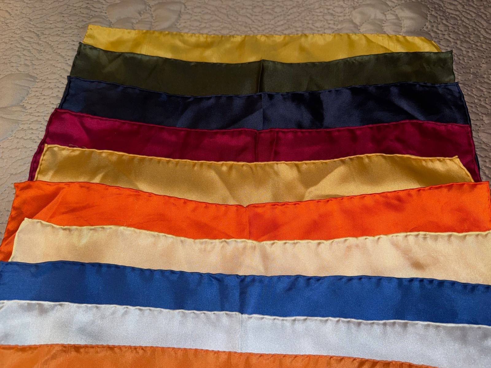 Lot of 13 Pocket Squares Scarf Handkerchief Silk Hand Rolled NWOT