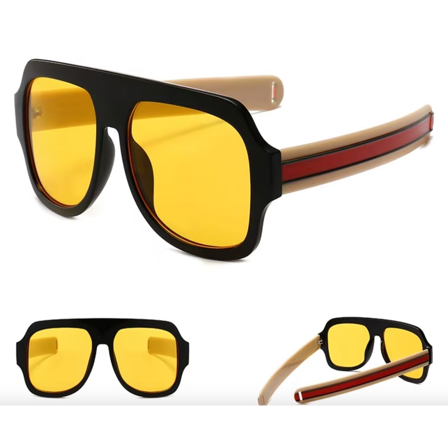 Oversized Aviator Sunglasses Yellow Lens Fashion Sun Glasses Trendy Beach Lentes