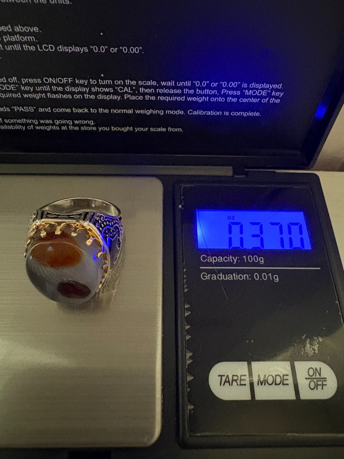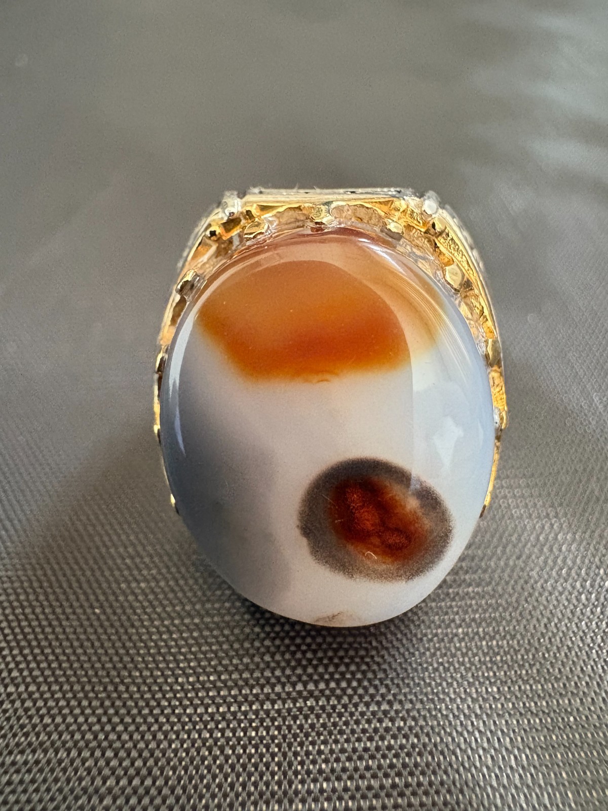 925 Sterling Silver Ring Yemeni Aqeeq Agate Stone Ring Men Ring New Size 9 US