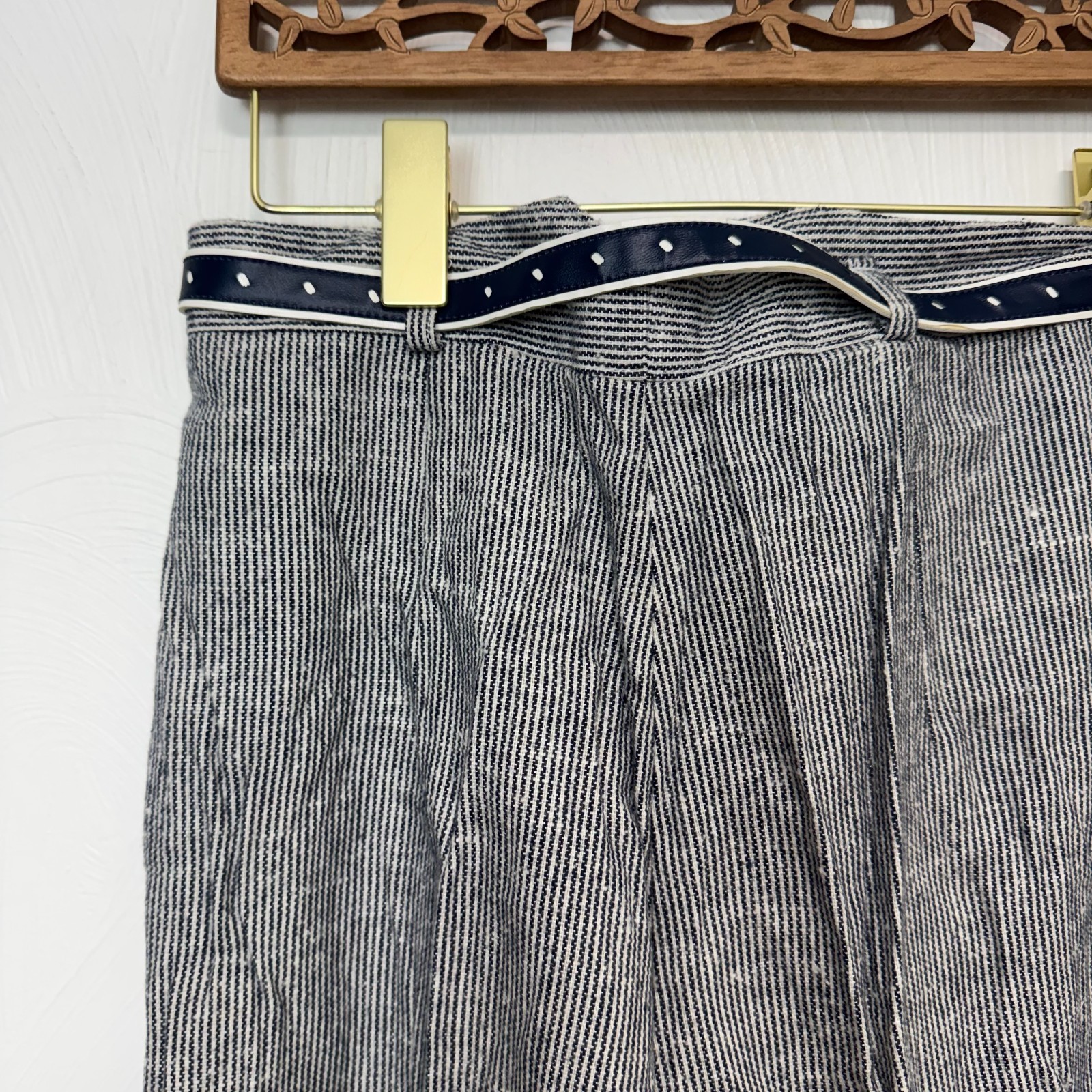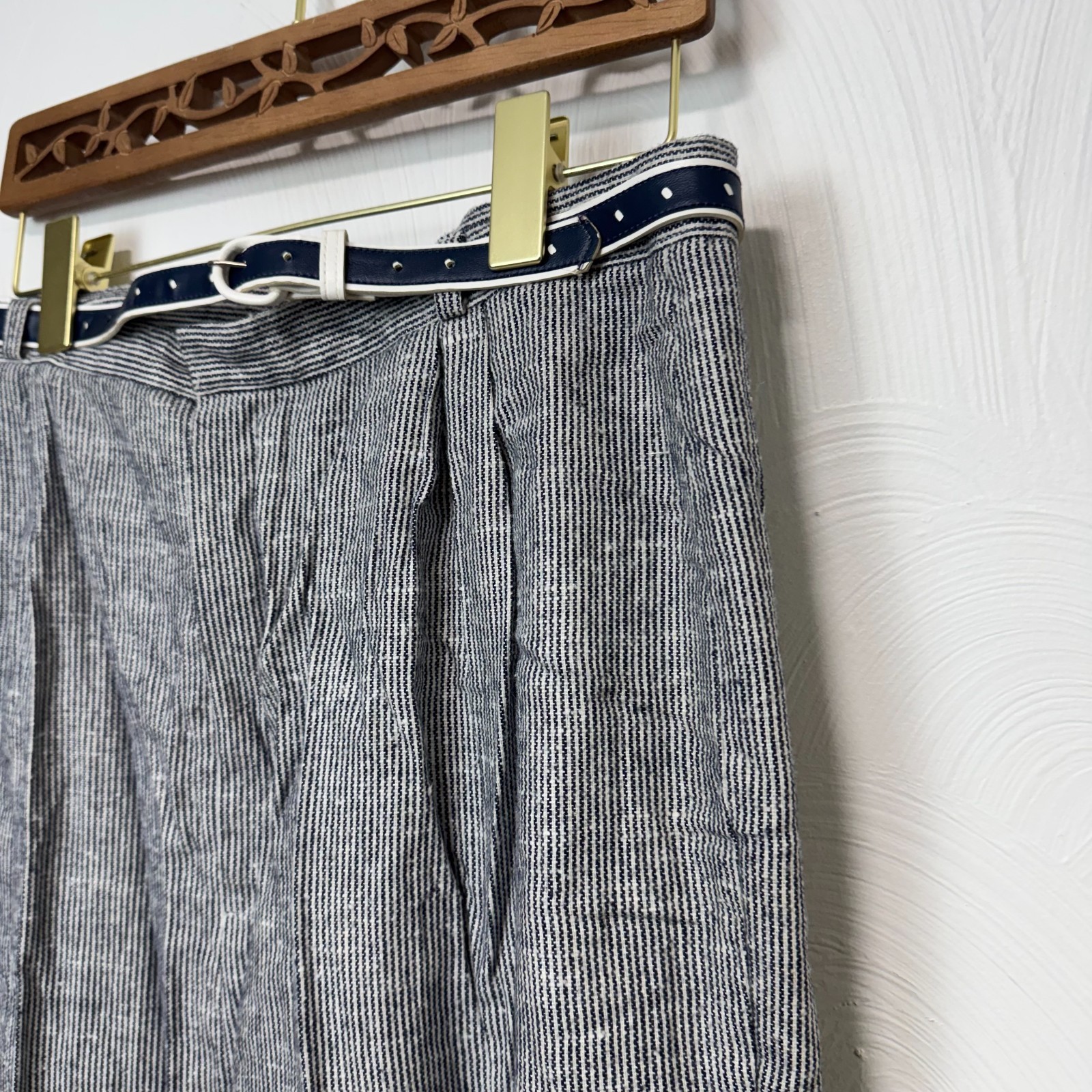 Vintage Cos Cob Black White Striped Belted Dress Pants Womens 16 1990s Casual