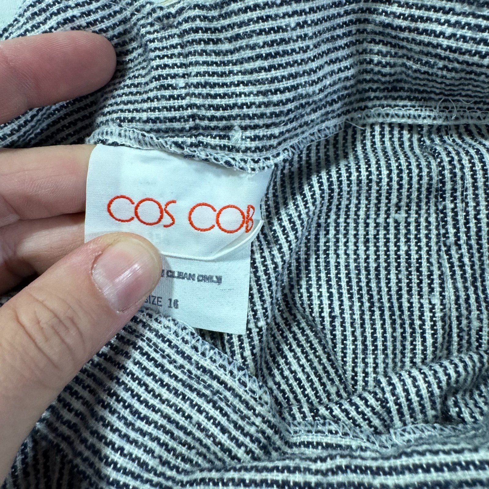 как выглядит Vintage Cos Cob Black White Striped Belted Dress Pants Womens 16 1990s Casual фото