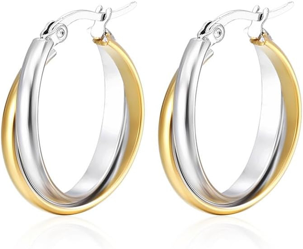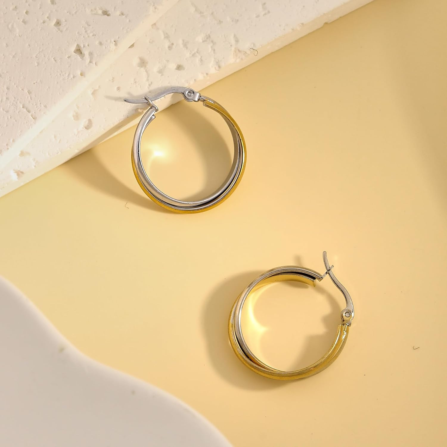 Two Tone Earrings for Women Gold and Silver Earrings Polished Chunky Huggie Hoop