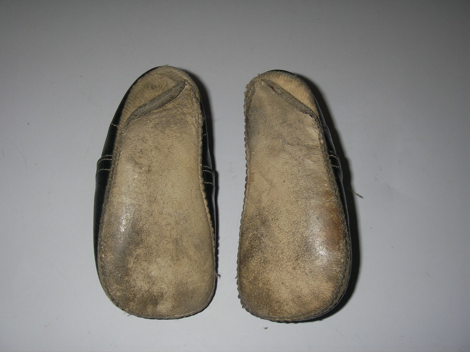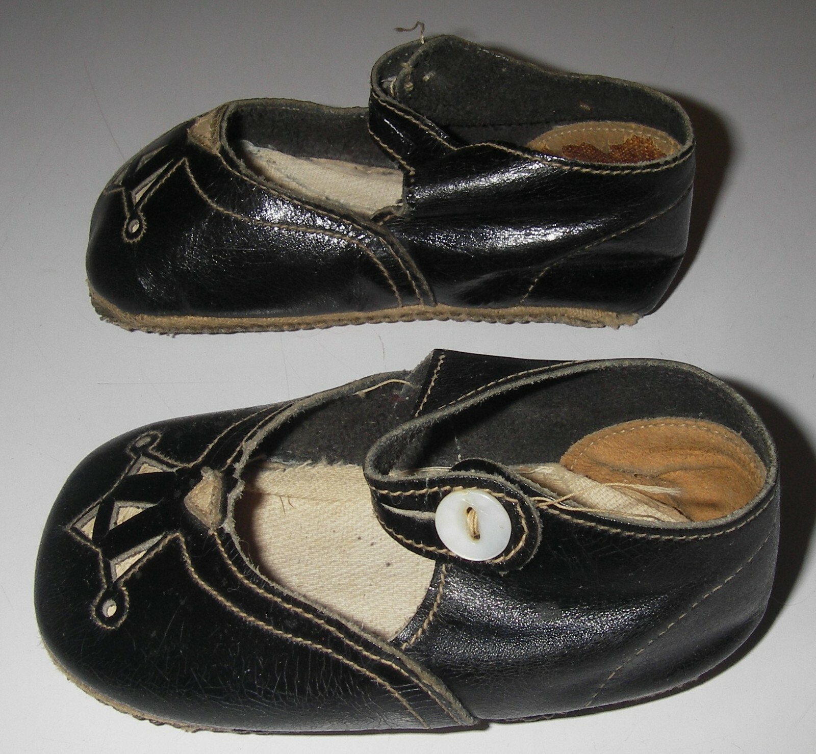 Antique Victorian Edwardian Baby Child s DOLL Black Leather Button Strap Shoes