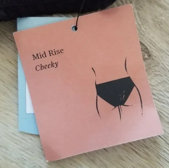 NWT Shade Shore Black Textured Mid Rise Cheeky Bikini Bottom Size Medium