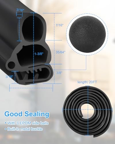 Automotive Door Weather Stripping, Car Door Rubber Seal Strip Trim with 20FT
