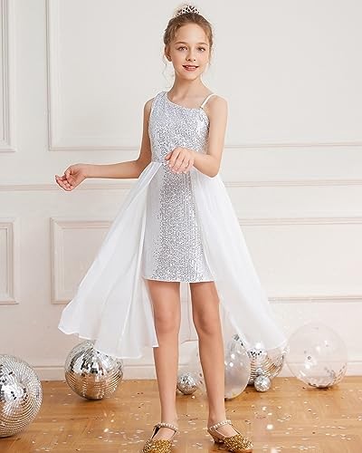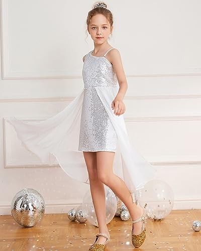 как выглядит Girls Sequin Formal Dress Sequin Pageant Wedding Guest 10-12 Years Sliver фото