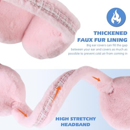 Winter Women Earmuffs Faux Fur Girls Ear muffs Warm Unisex Kids Ear Plaid Pink