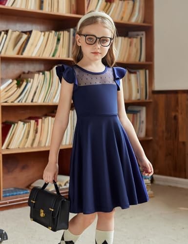 Girls Dresses Summer Formal Party Wedding Ruffle Sleeve 9-10 Years Navy Blue