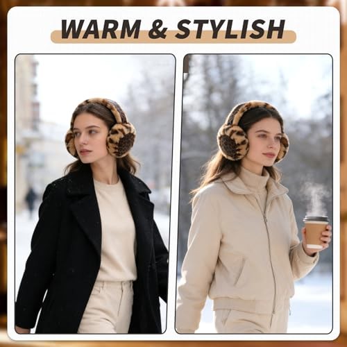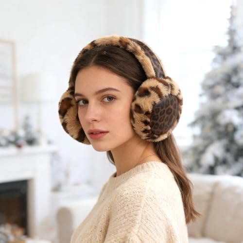Ear Muffs Women Foldable Fluffy Earmuffs Soft Faux Fur Winter Ear Leopard