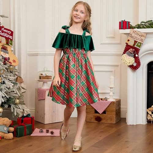 Girls Dress Princess Velvet A-Line Tie Shoulder 4-5T Christmas Green