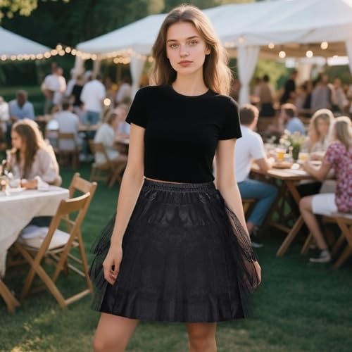baotongle Girls 3 Layers Tulle Short Wedding Flower Girl Small Standard Black
