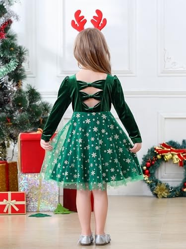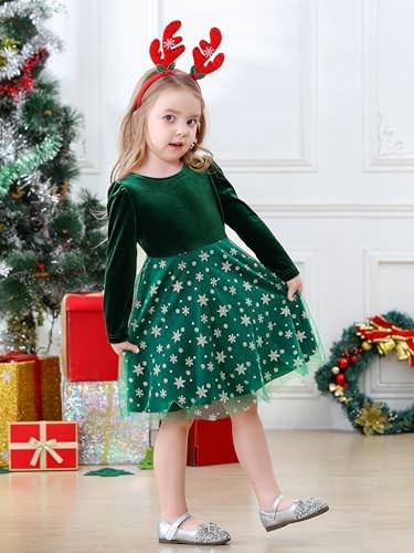 Toddler Girls Velvet Dress Ruffle Fall Winter 9-10 Years Darkgreen snowflake