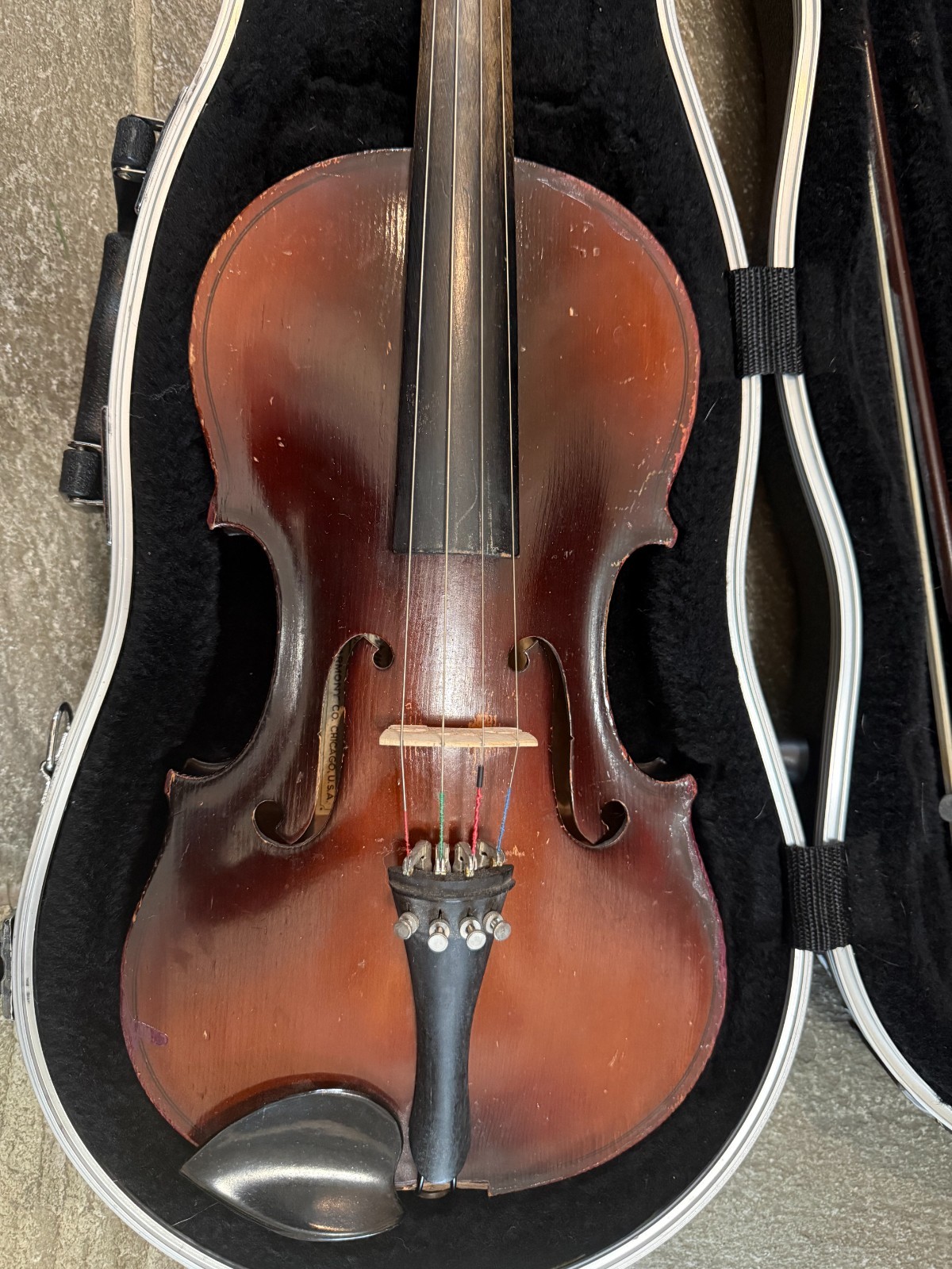Violin with case and bow, full size. Harmony brand. Chicago.