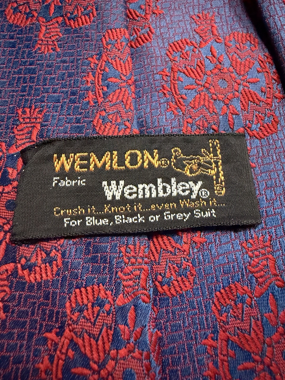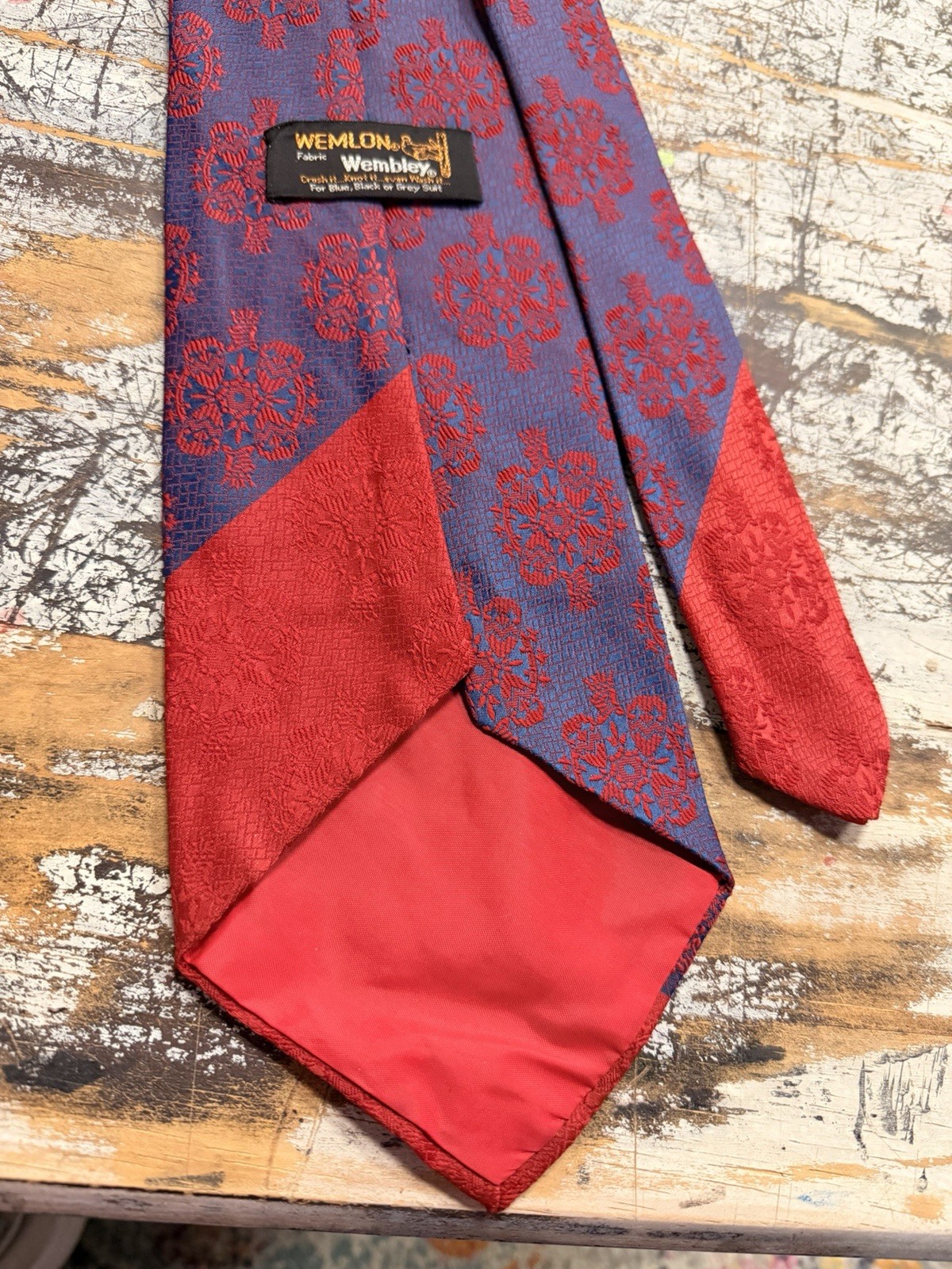 VTG 60s 70s Wembley Tie Red Blue Abstract Geometric Mod Disco Wide Tie Wemlon