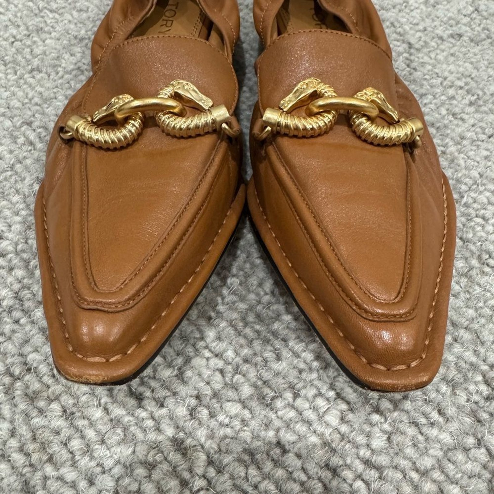 как выглядит Tory Burch Brown Leather Jessa Loafers Size 8 Horse-bit Equestrian фото