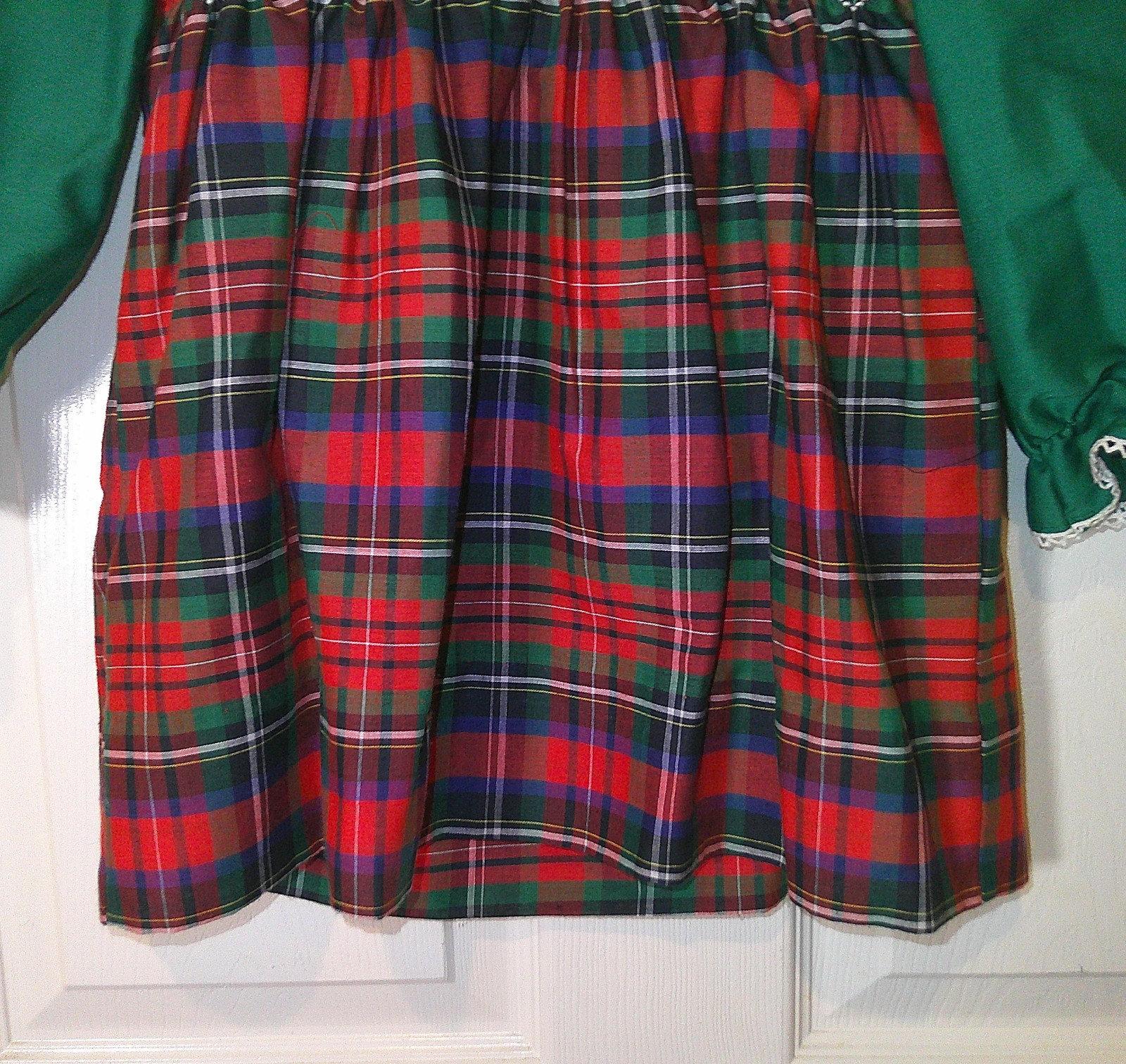 Vintage 1970s Girls Polly Flinders Smocked Plaid Red Green Dress Long Sleeve T4