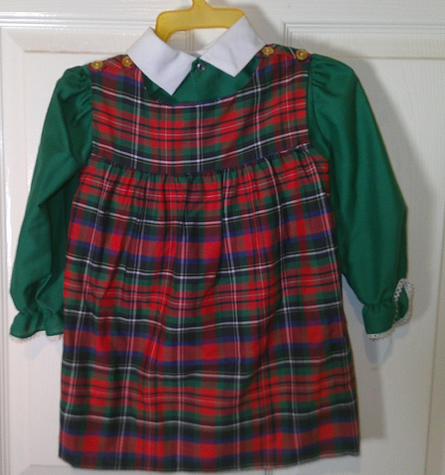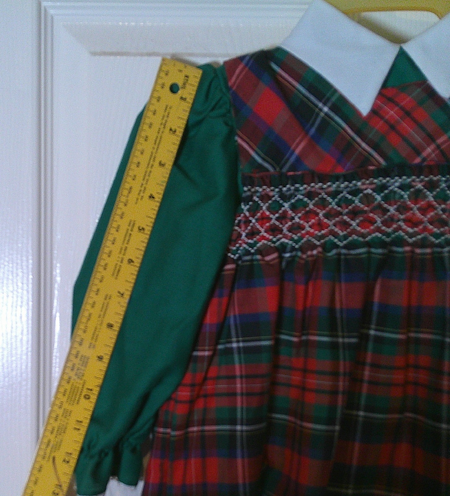 как выглядит Vintage 1970s Girls Polly Flinders Smocked Plaid Red Green Dress Long Sleeve T4 фото
