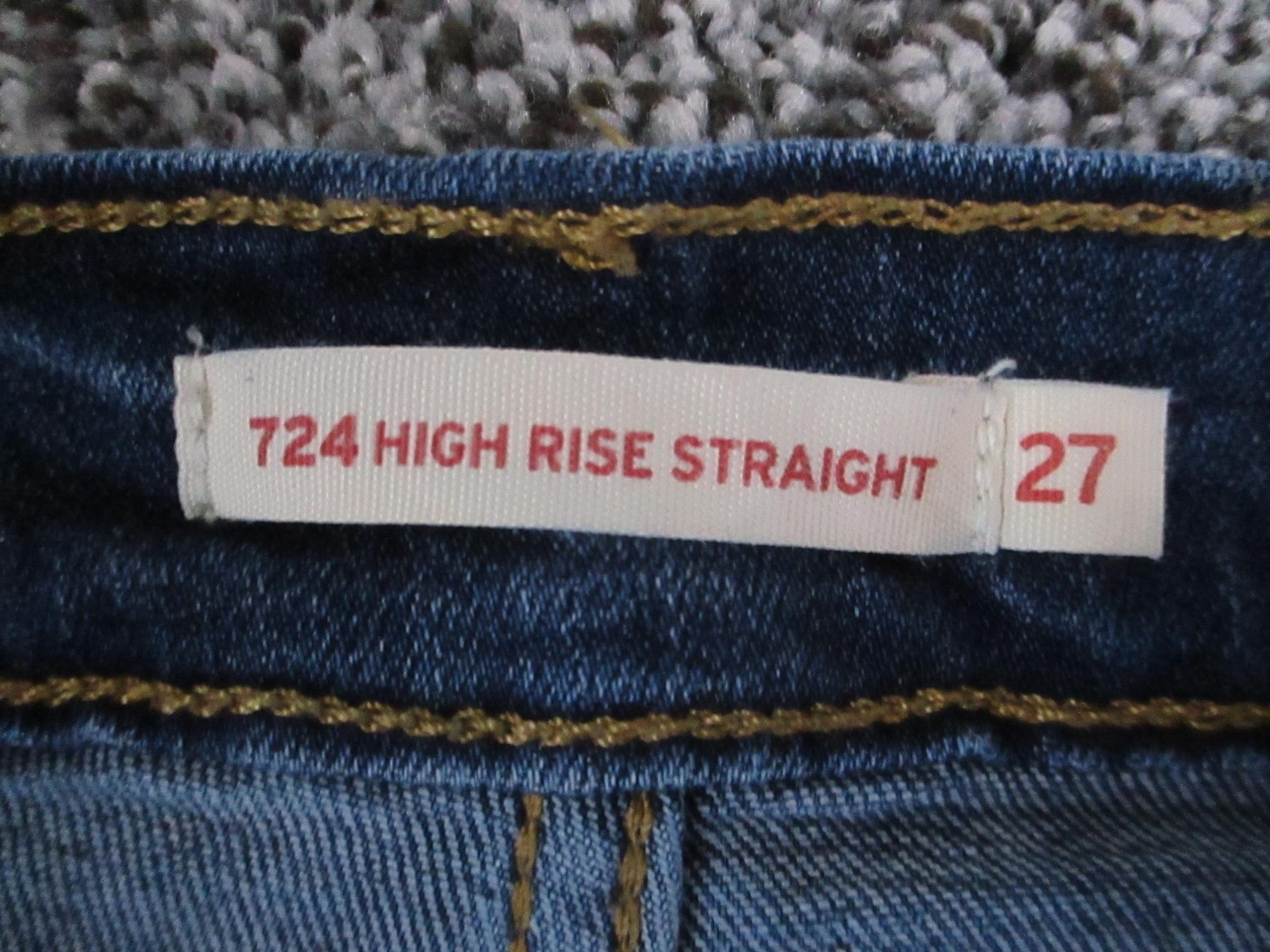 Levis 724 High Rise Straight Jeans Womens 27 Blue Distressed Stretch Denim 27x30