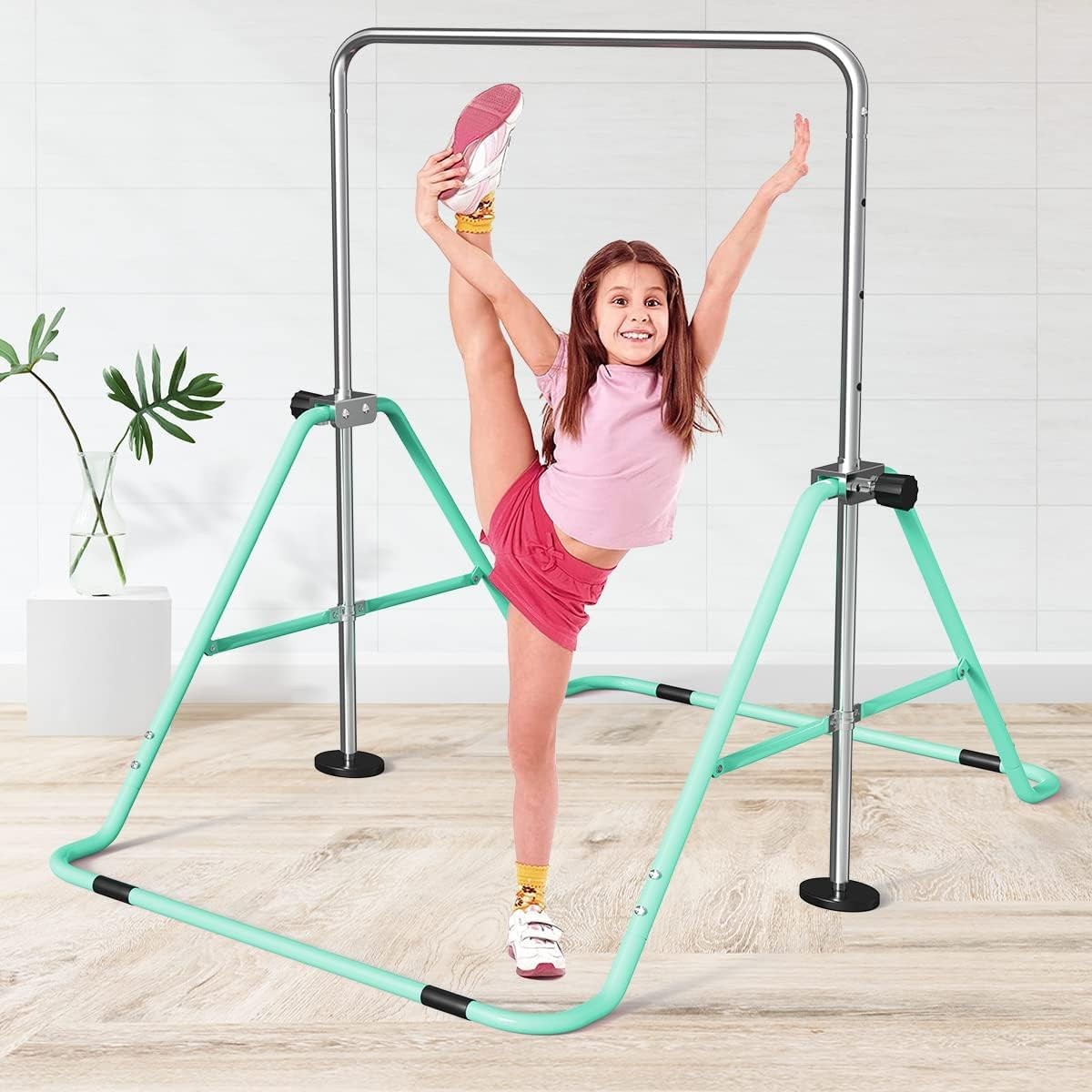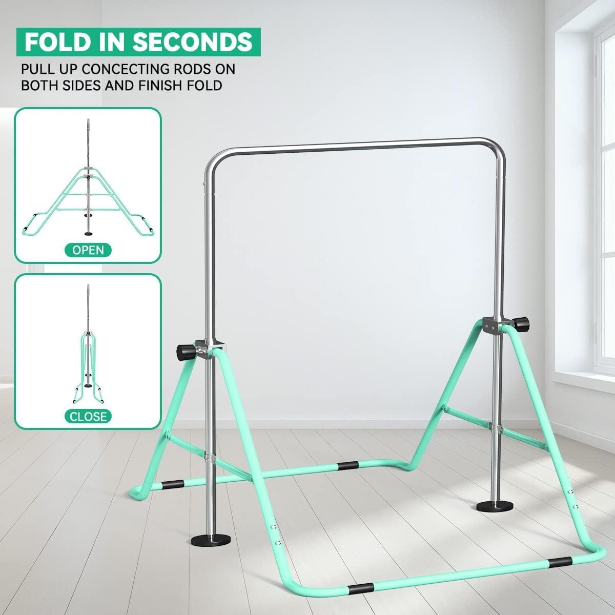 Gymnastics Bar for Kids, Adjustable Height Gymnastic Horizontal Bars,Green- SALE