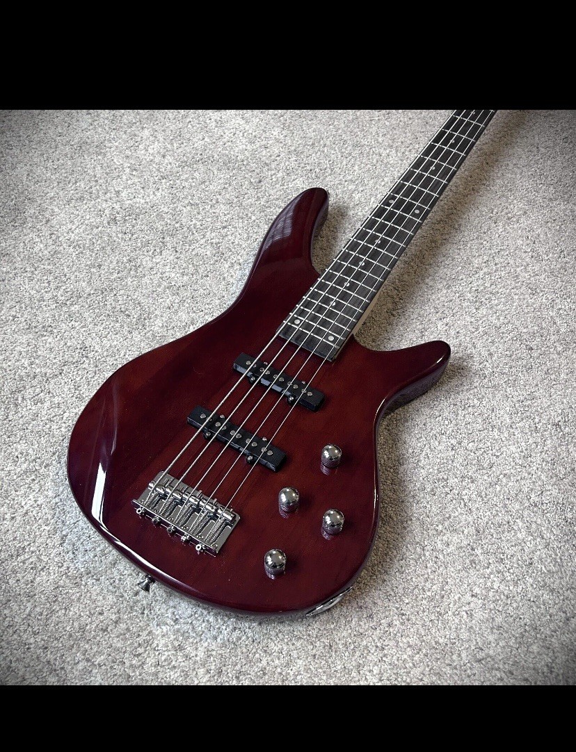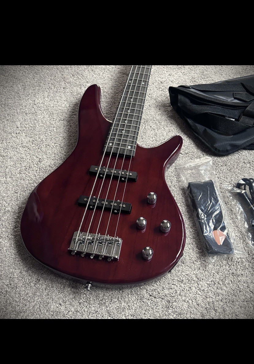 5 String Electric Bass Guitar with 24 Frets, Trans Red Clay Finish, with Gig Bag