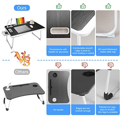 Laptop Bed Table, Laptop Desk for Bed, Foldable Laptop Bed Desk with USB Black