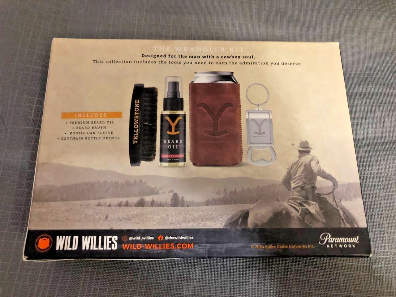 Yellowstone Wild Willies The Wrangler Beard Kit Beard oil Brush Coozie Opener