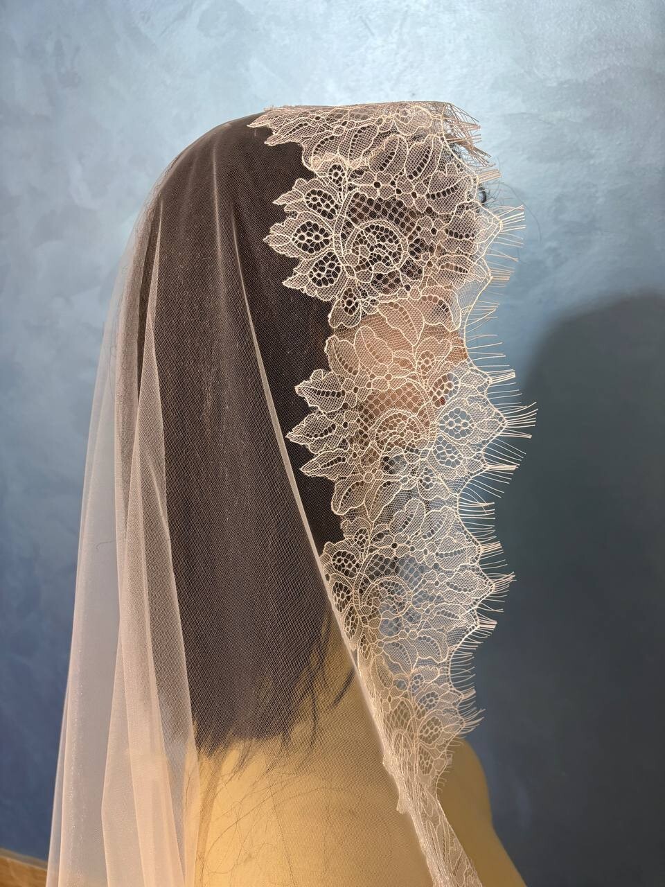 bridal mantilla Veil 1 tier bridal lace veil french Chantilly
