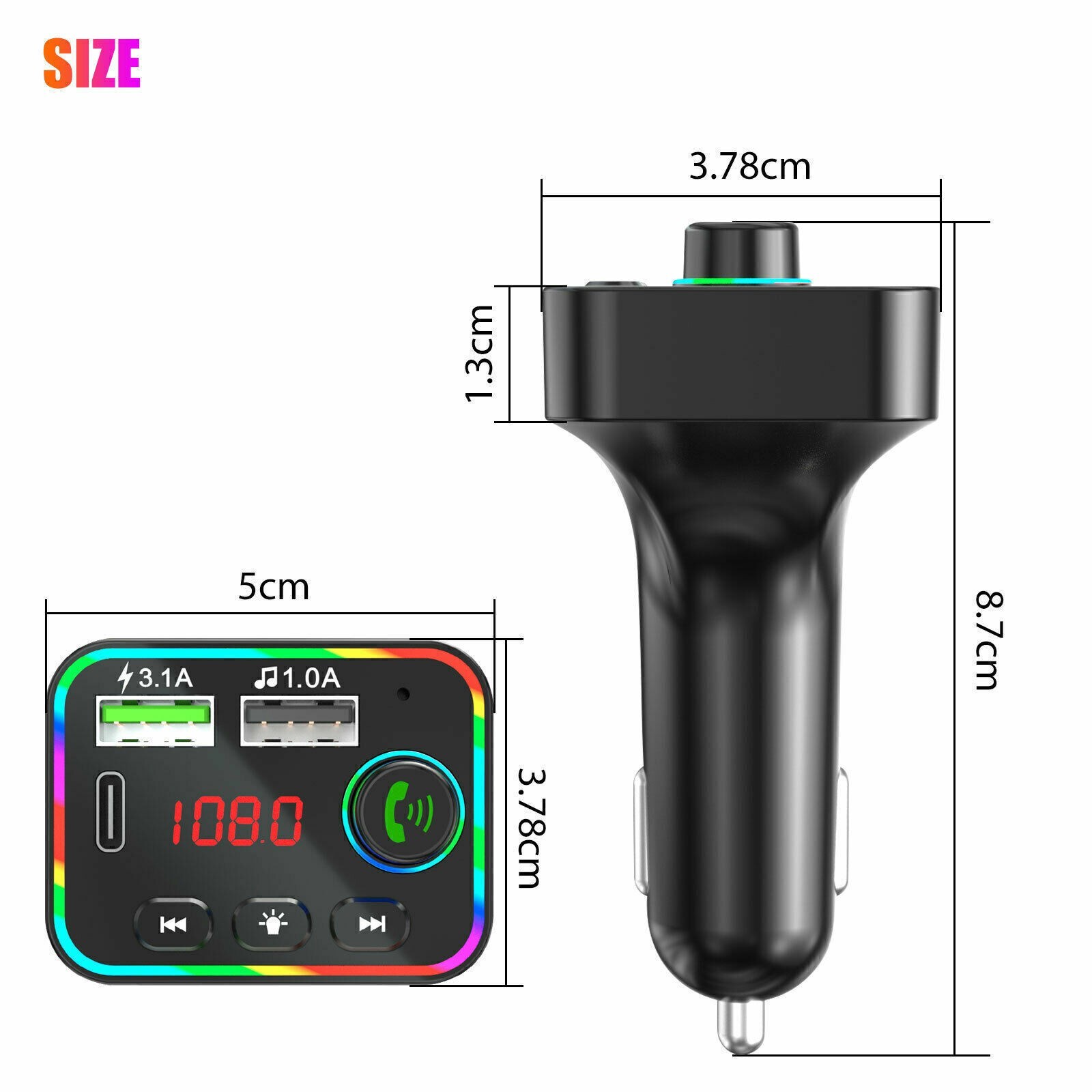 FM Transmitter Hands-Free Radio MP3 AUX Adapter USB PD Charger Car for Bluetooth