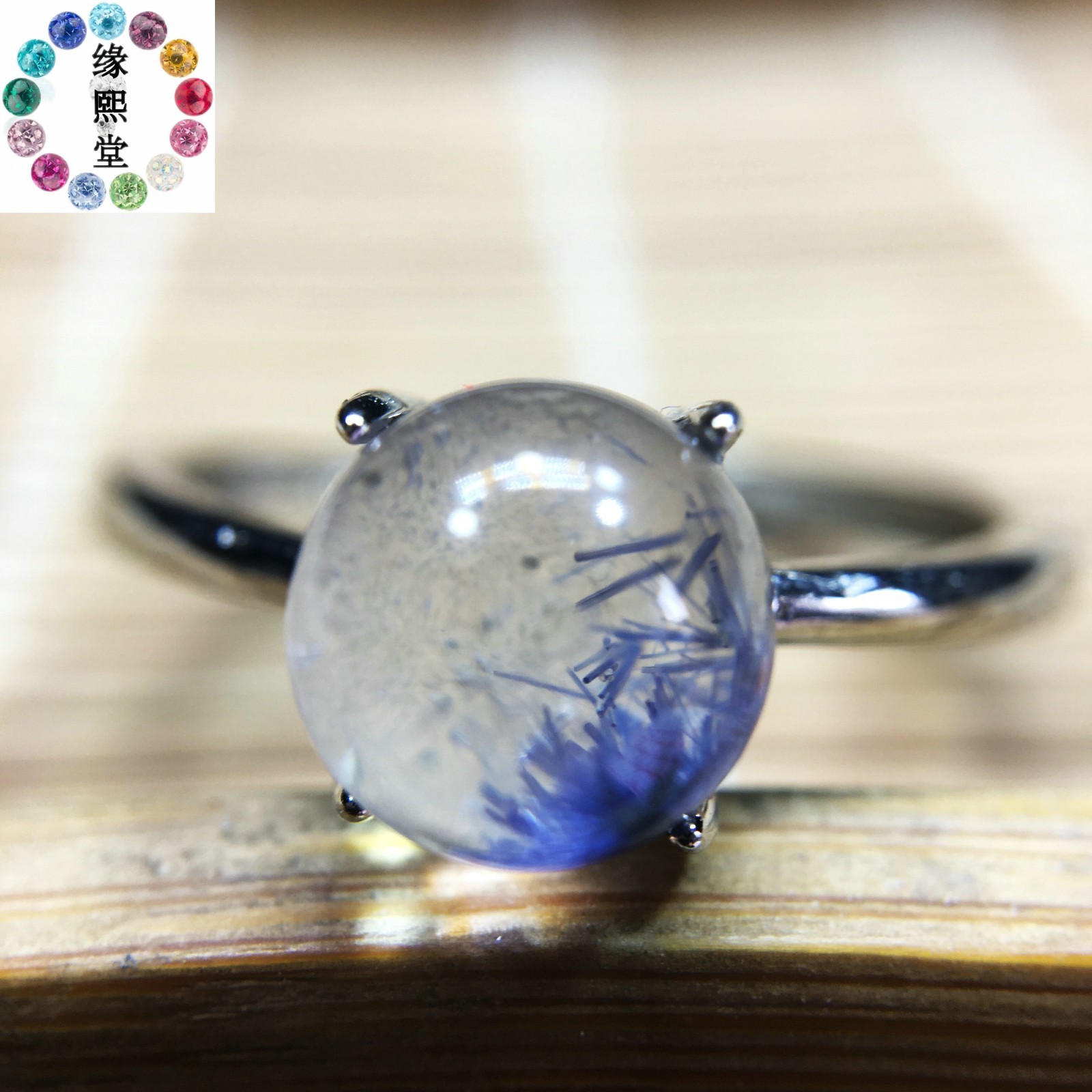 как выглядит Natural Blue Rare Dumortierite Quartz 925 Silver Rutilated Adjustable Ring A-013 фото