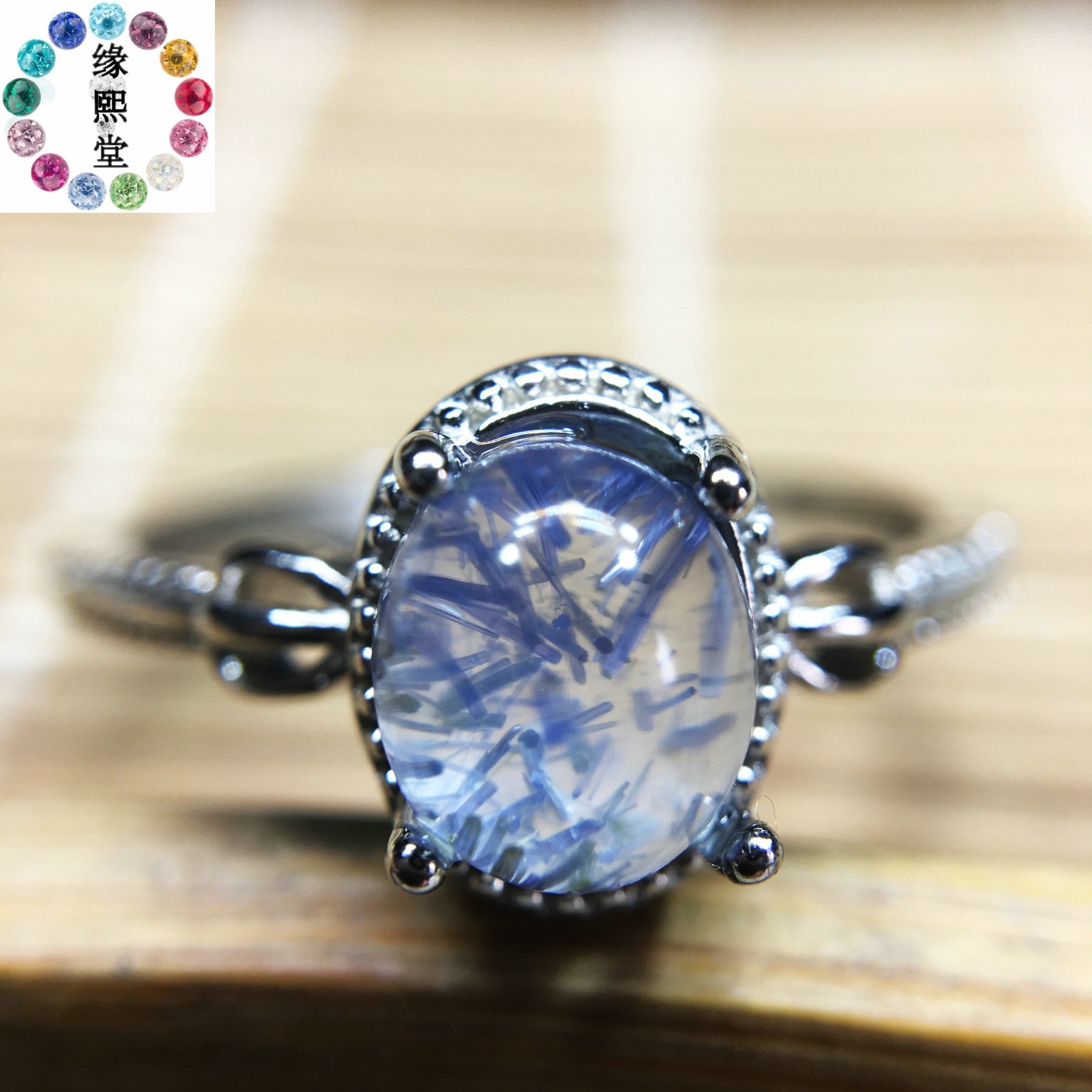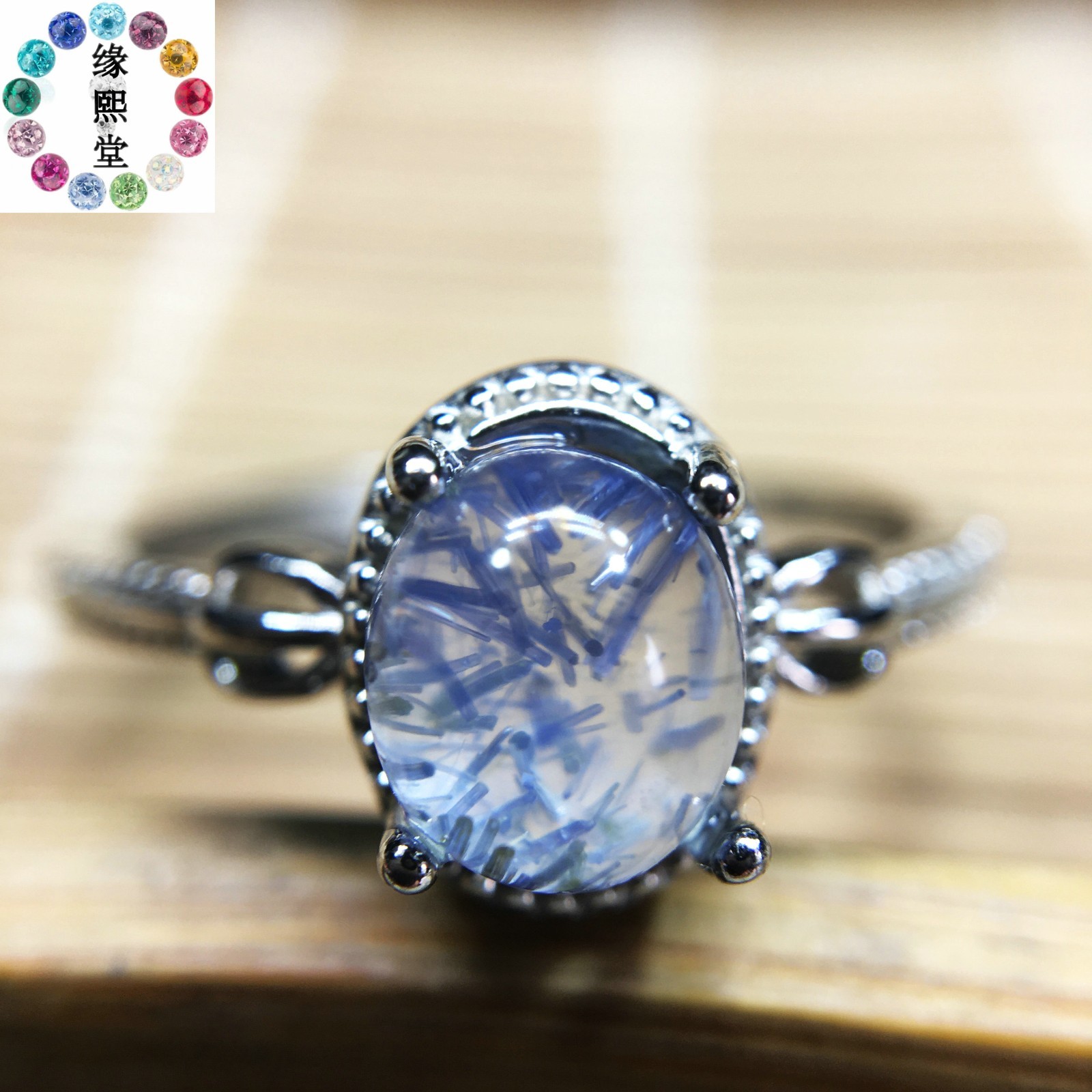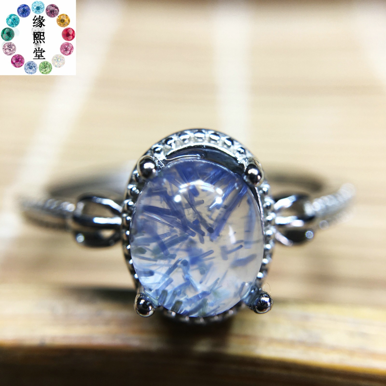 как выглядит Natural Blue Rare Dumortierite Quartz 925 Silver Rutilated Adjustable Ring A-035 фото