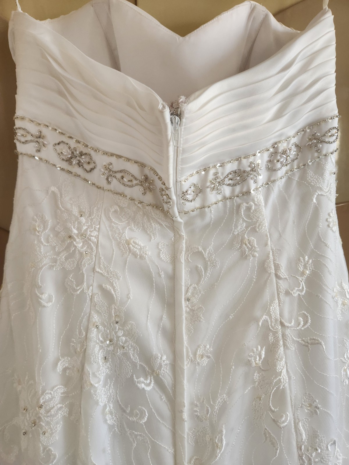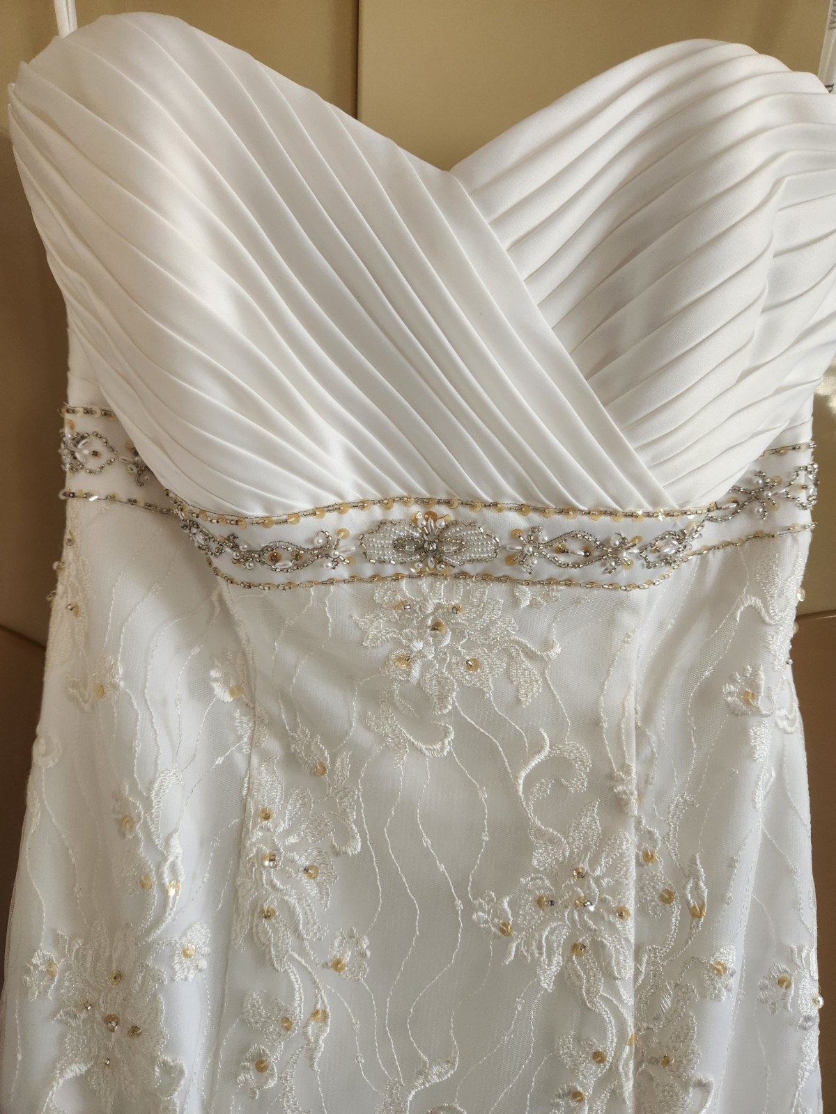David s Bridal Elegant Lace A-Line Wedding Gown Sweetheart Bodice, Beaded...